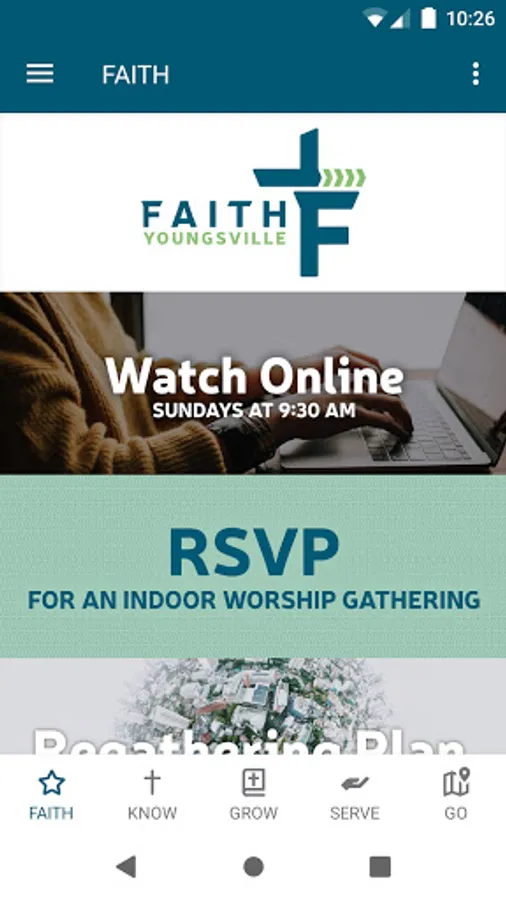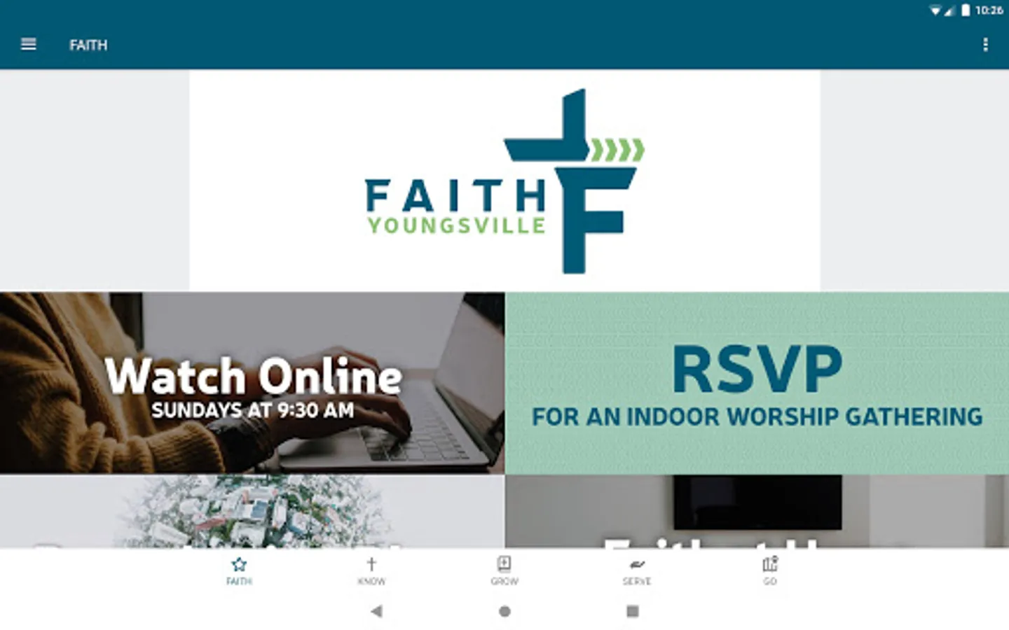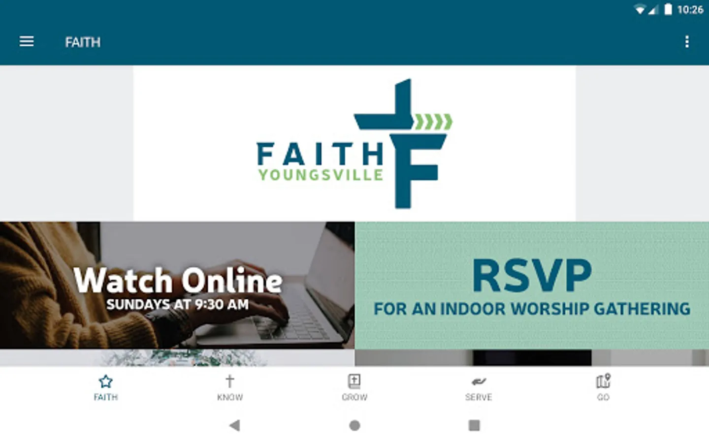 The FaithNC app is an easy way to connect to Faith Youngsville and access resources on Sundays and throughout the week to help you make disciples who know Christ, grow together, serve others, and go to your neighbors and the nations.