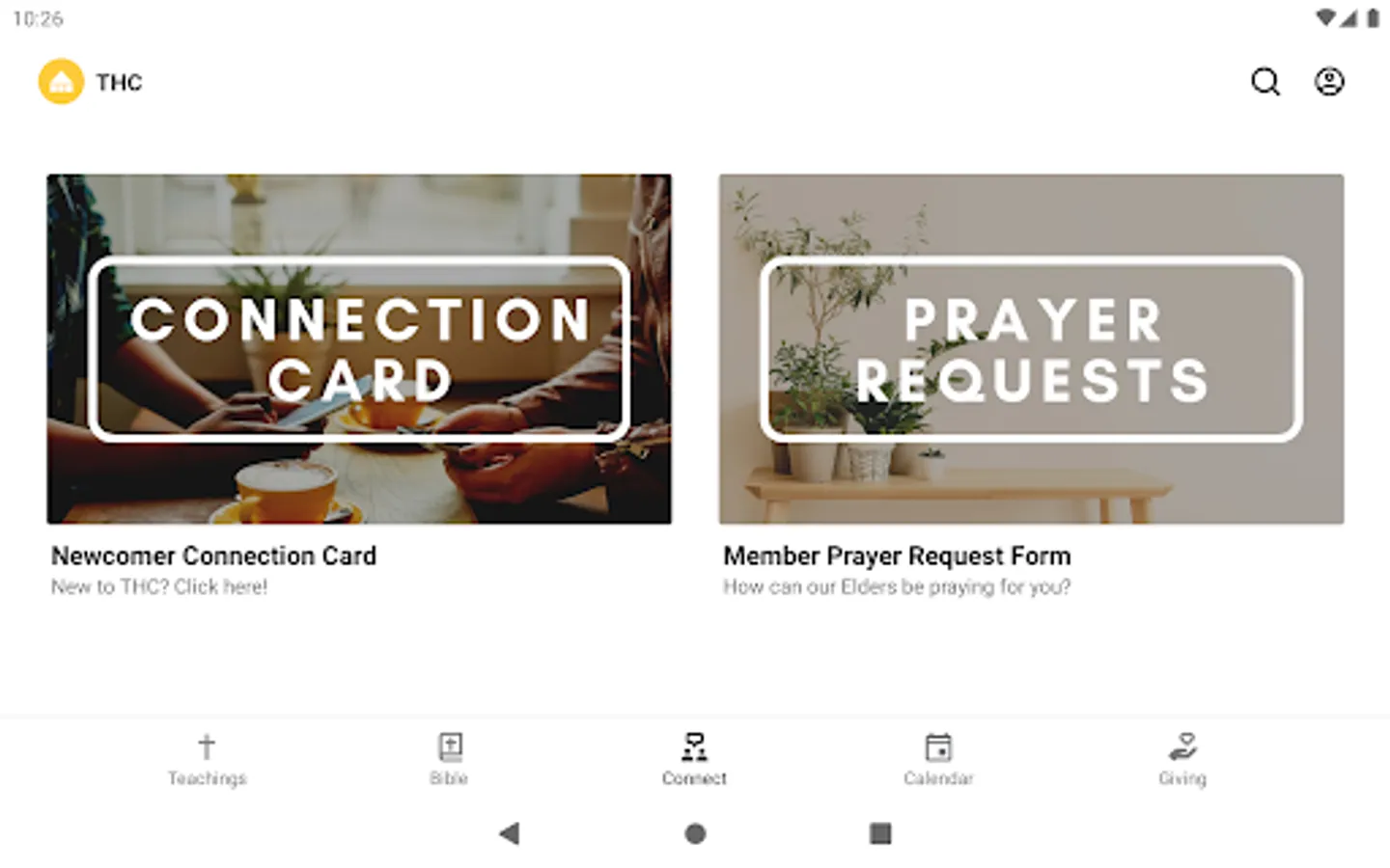 This app is packed with powerful content and resources to help you grow and stay connected here at THC. With this app you can: