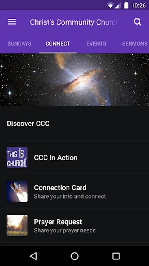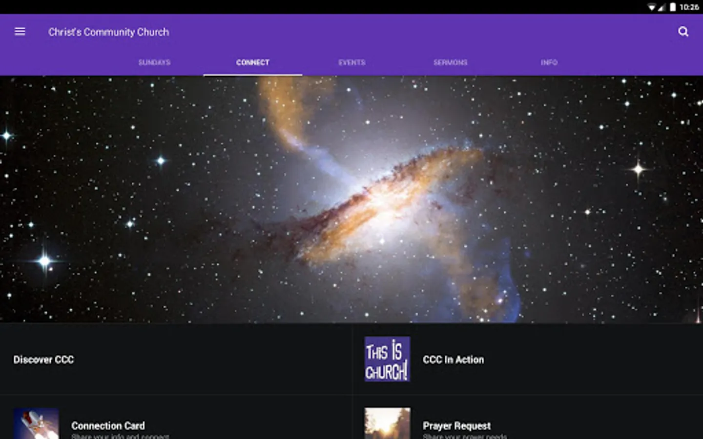 The Christ's Community Church App was created with the Subsplash App Platform.