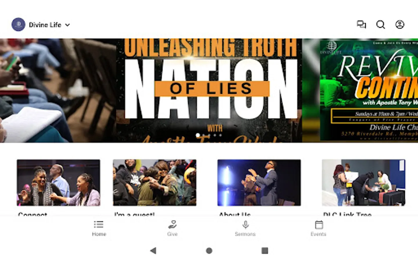 The Divine Life Memphis App was created with the Subsplash App Platform.