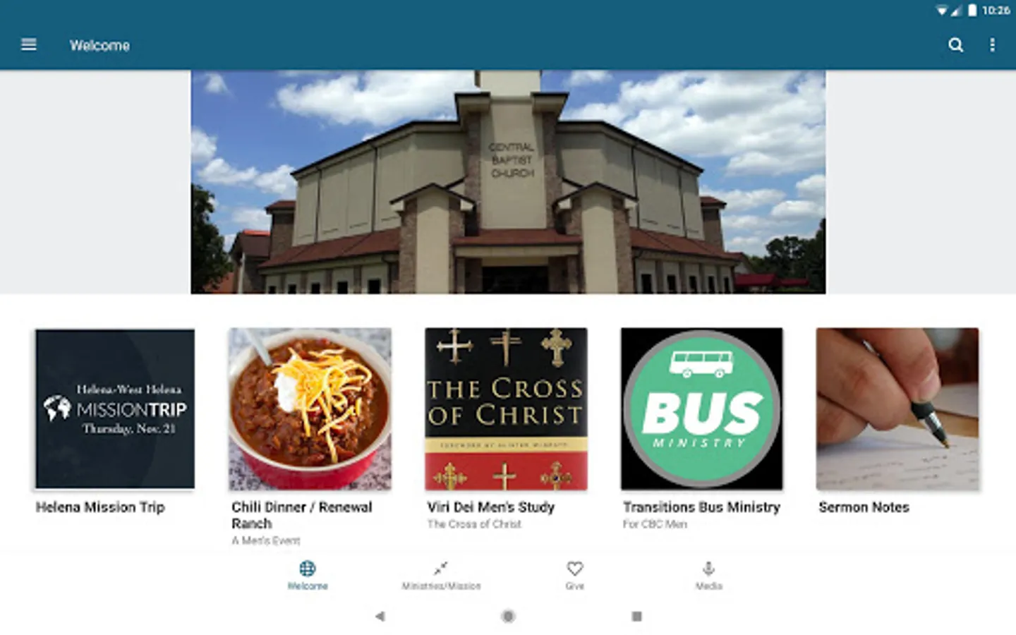 The Central Baptist Church NLR, AR App was created with the Subsplash App Platform.