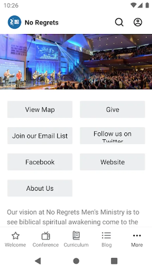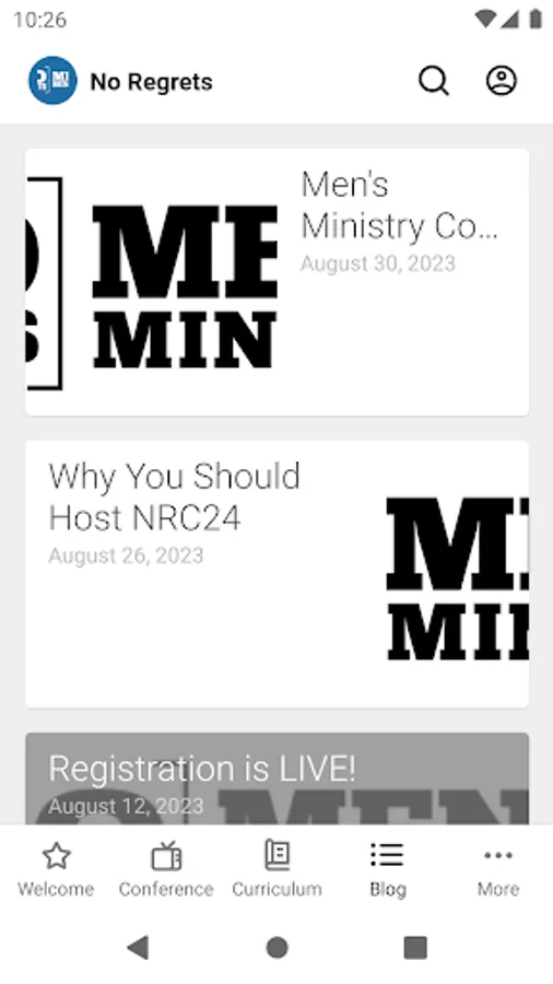 The No Regrets Men's Ministries App was created with the Subsplash App Platform.