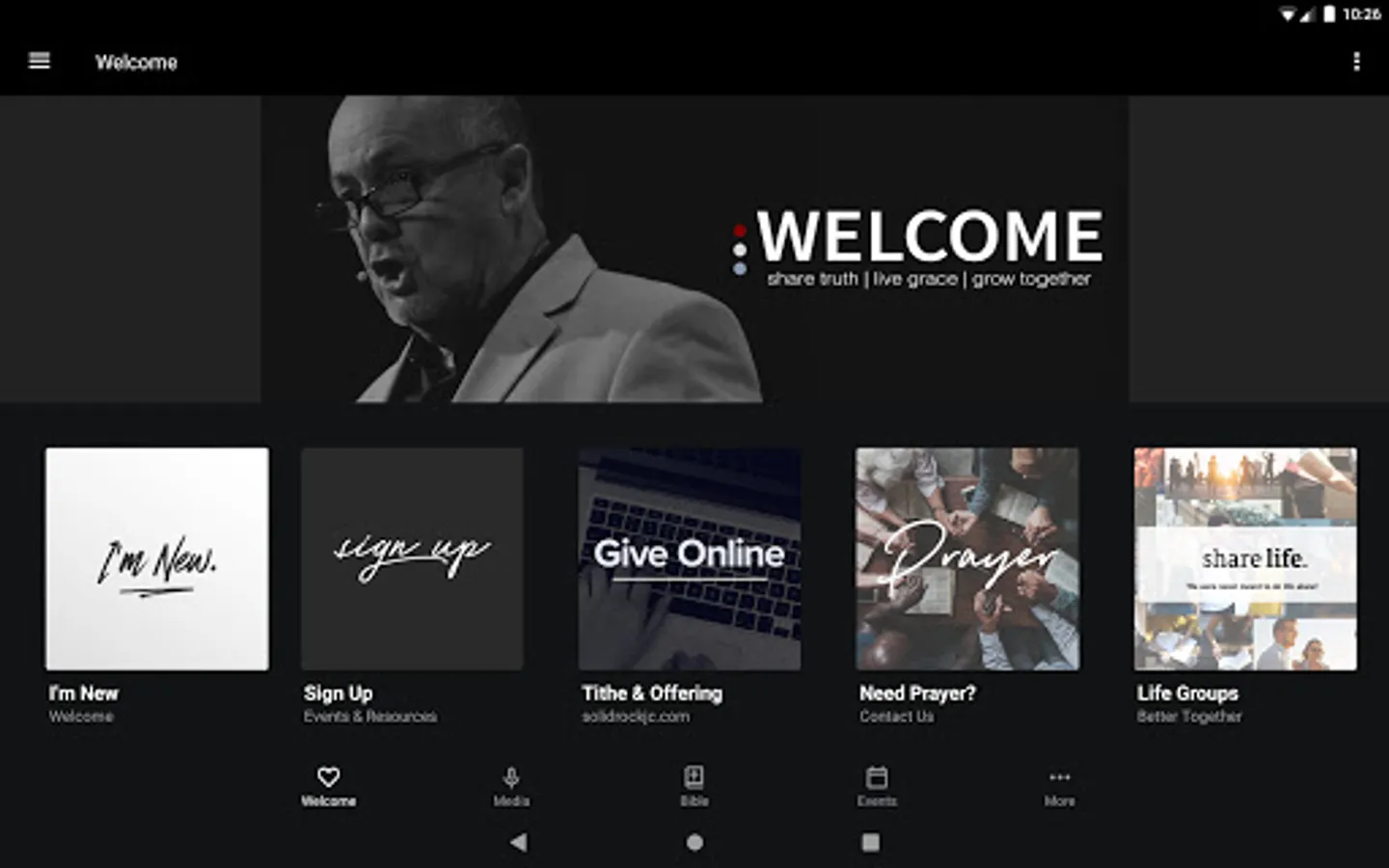 The Solid Rock Church App was created with the Subsplash App Platform.