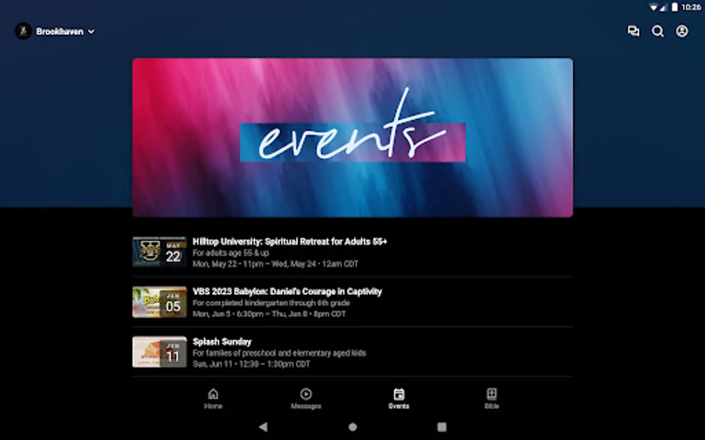 This app will help you stay connected with the day-to-day life of our church. With this app you can: watch or listen to past messages; stay up to date with push notifications; share your favorite messages via Twitter, Facebook, or email; and download messages for offline listening.