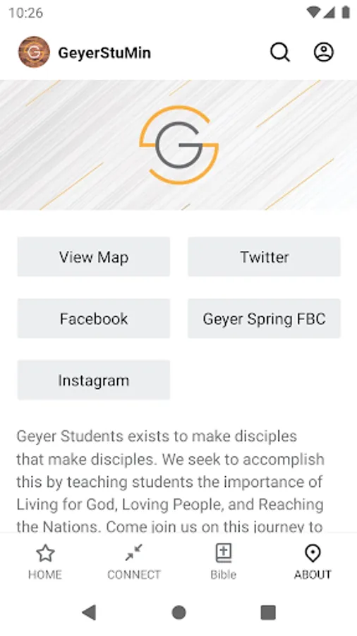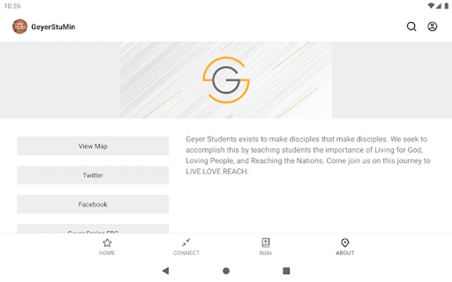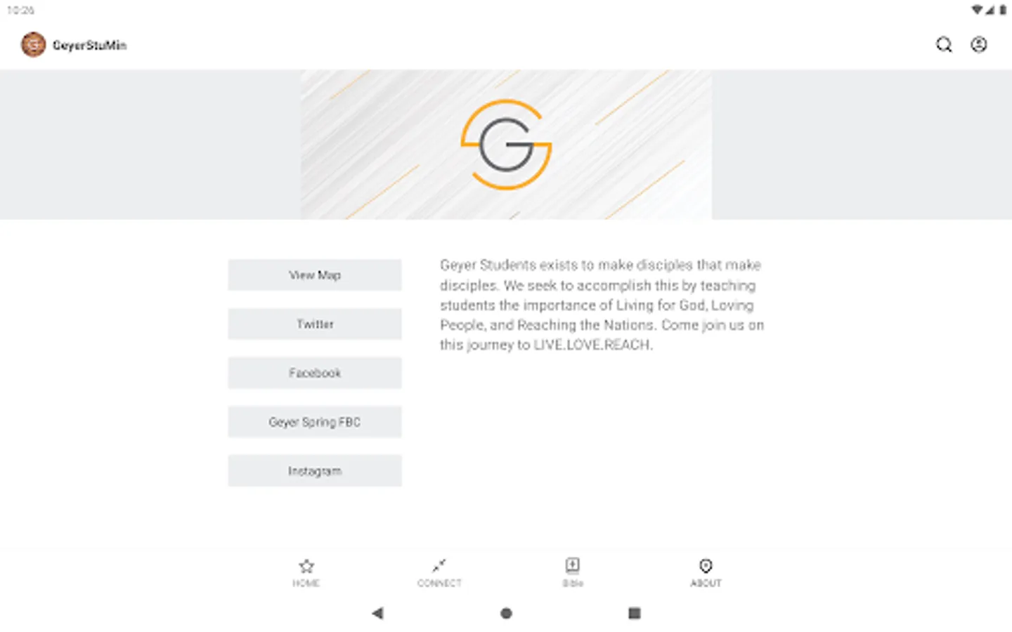 The Geyer Students app was developed with the Subsplash App Platform.