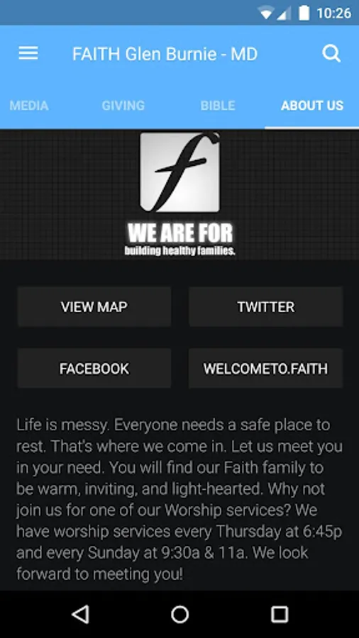 The Faith Glen Burnie App was created with the Subsplash App Platform.