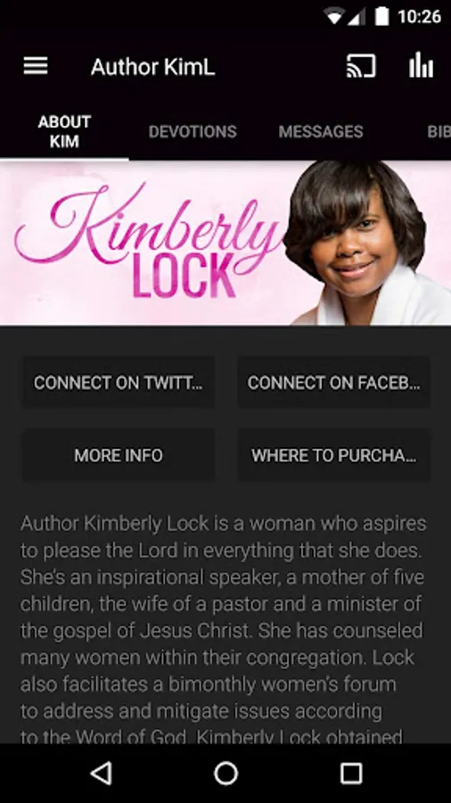 The Author Kimberly Lock App was created with the Subsplash App Platform.