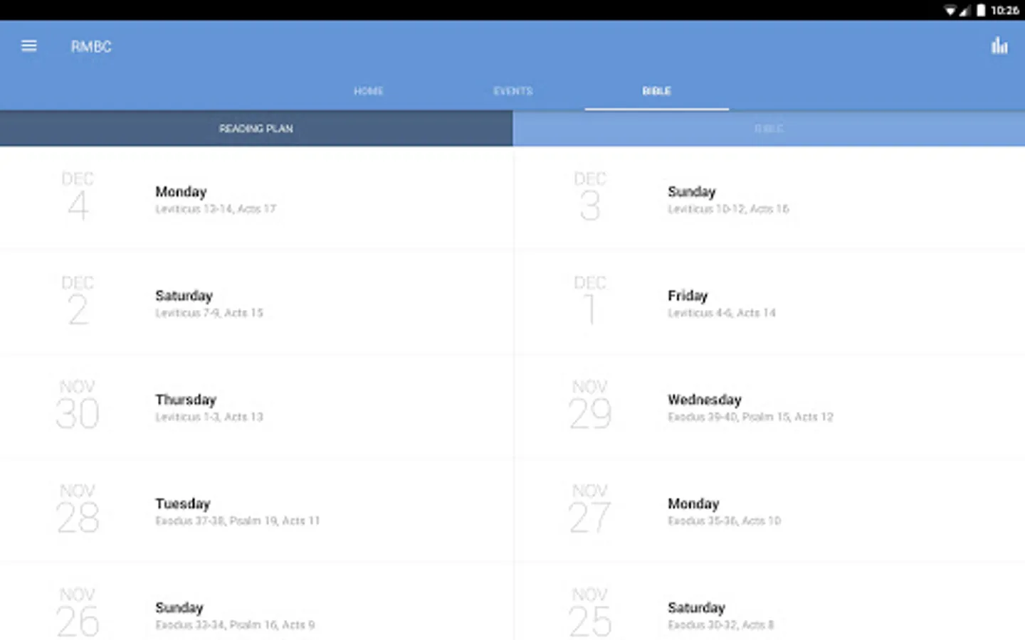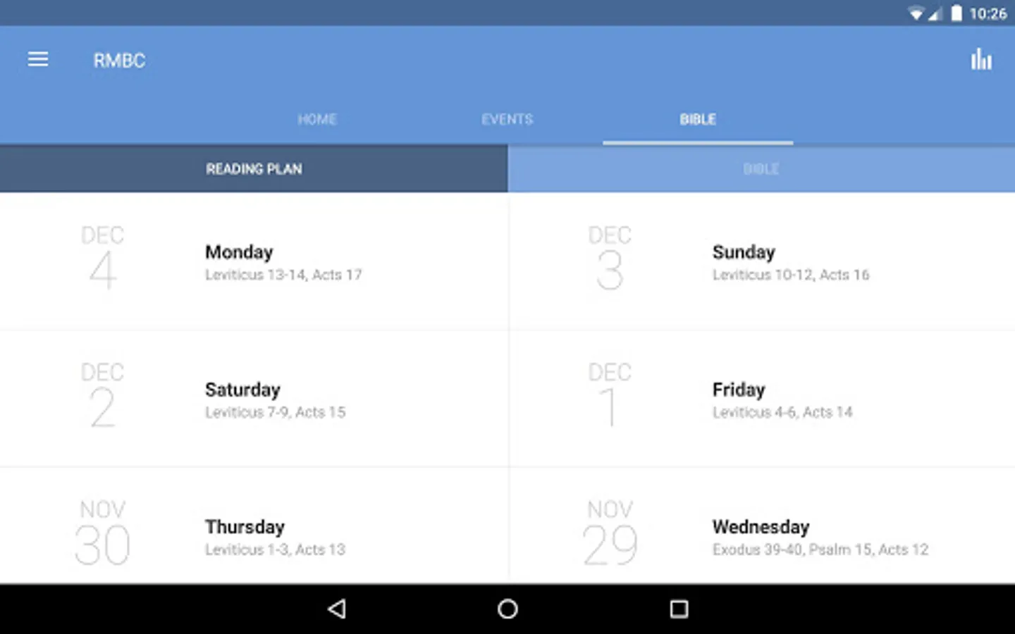 The RMBC App connects you to a variety of resources, including sermons, giving, prayer, event information, and more.