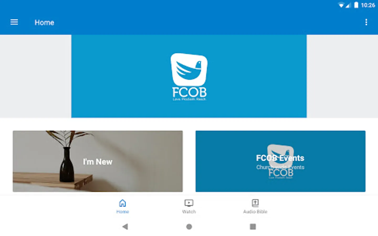 This app will help you stay connected with the day-to-day life of fcob. With this app you can: watch or listen to past messages; stay up to date with push notifications; share your favorite messages via Twitter, Facebook, or email; and download messages for offline listening. Enjoy as we LOVE, PROCLAIM & REACH!!