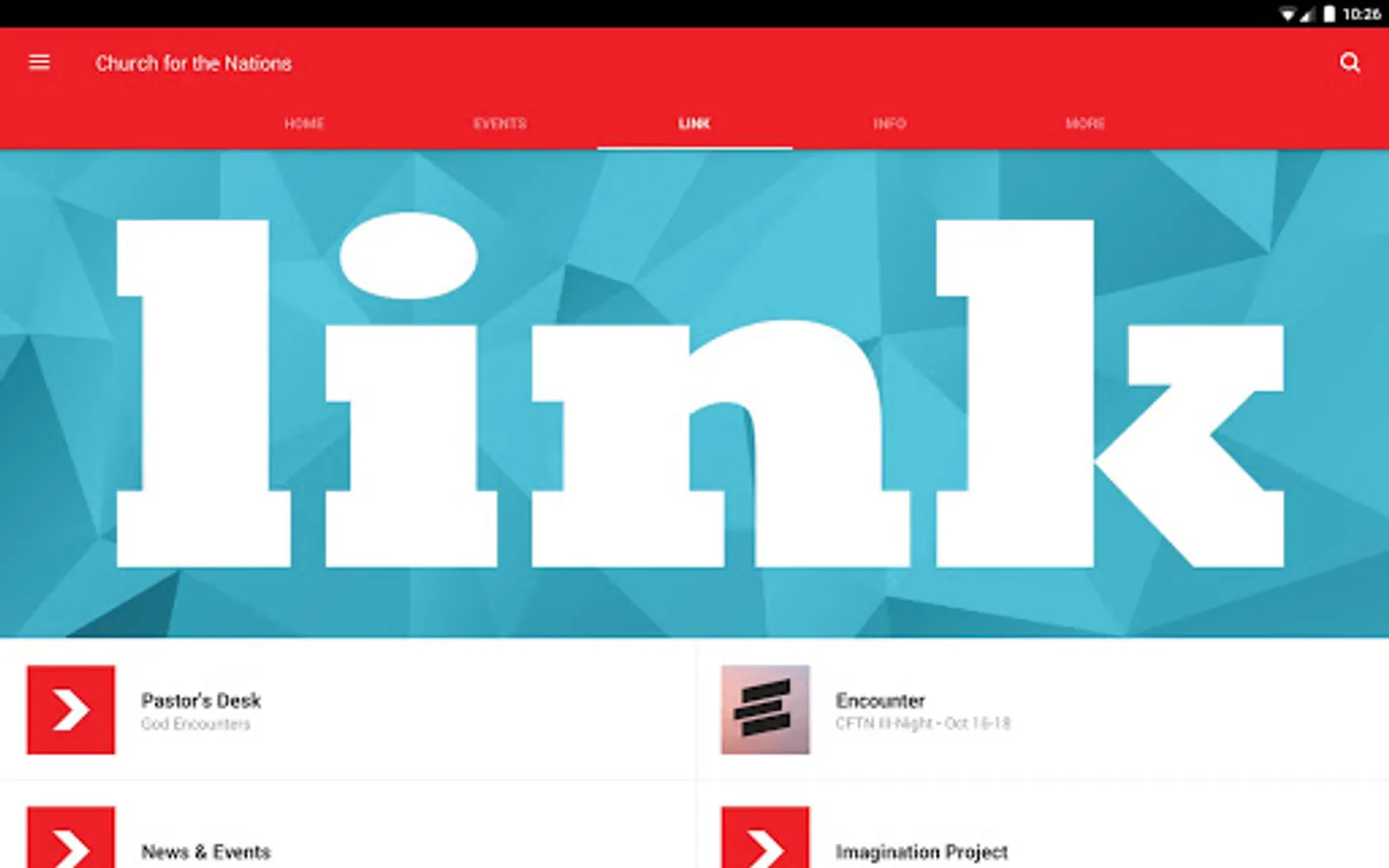 Connect with CFTN wherever you go with the official Church for the Nations app for your phone or tablet. Access recent sermons right when you need them and share them with loved ones. There are also great tools to improve your experience in service—take notes, register events, and give online with ease.
