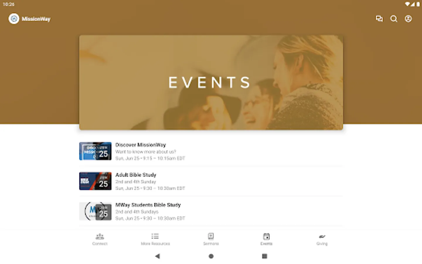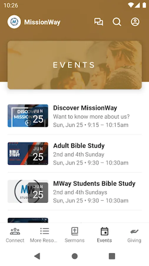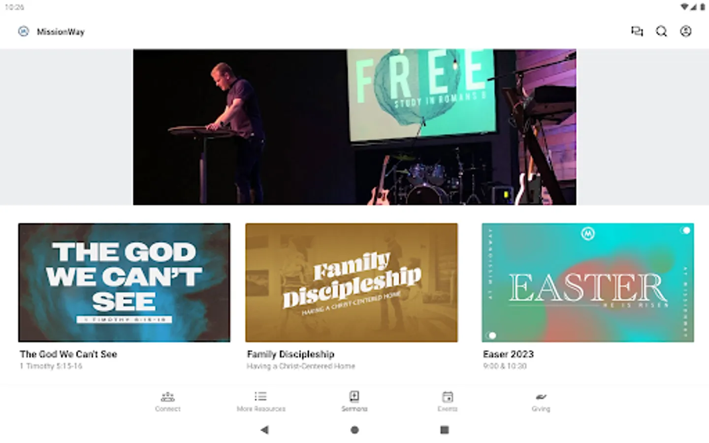 Download the MissionWay TV app in order to watch services both live and archived.