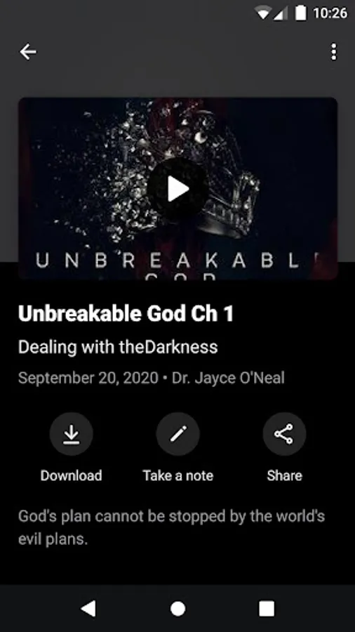 This app will help you stay connected with the day-to-day life of our church. With this app you can: watch or listen to past messages; stay up to date with push notifications; share your favorite messages via Twitter, Facebook, or email; and download messages for offline listening.