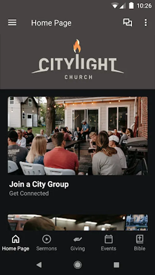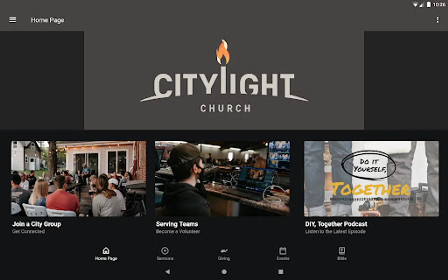 Citylight's app will help you stay connected with the day-to-day life of our church. With this app you can: watch or listen to past messages; message your City Group; sign up for upcoming events; stay up to date with push notifications; share your favorite messages via Facebook or email; download messages for offline listening; and quickly submit a financial gift!