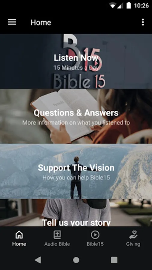 God has given us the Bible as a source of inspiration and to provide answers to life‘s most puzzling questions. Let Bible15 keep you engaged with God by investing 15 minutes a day listening to the most popular book in the world.