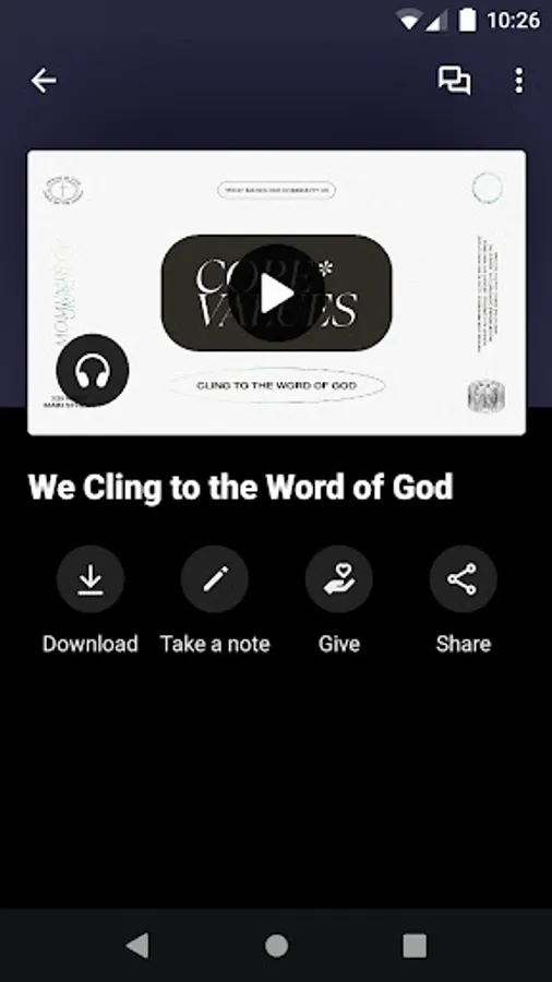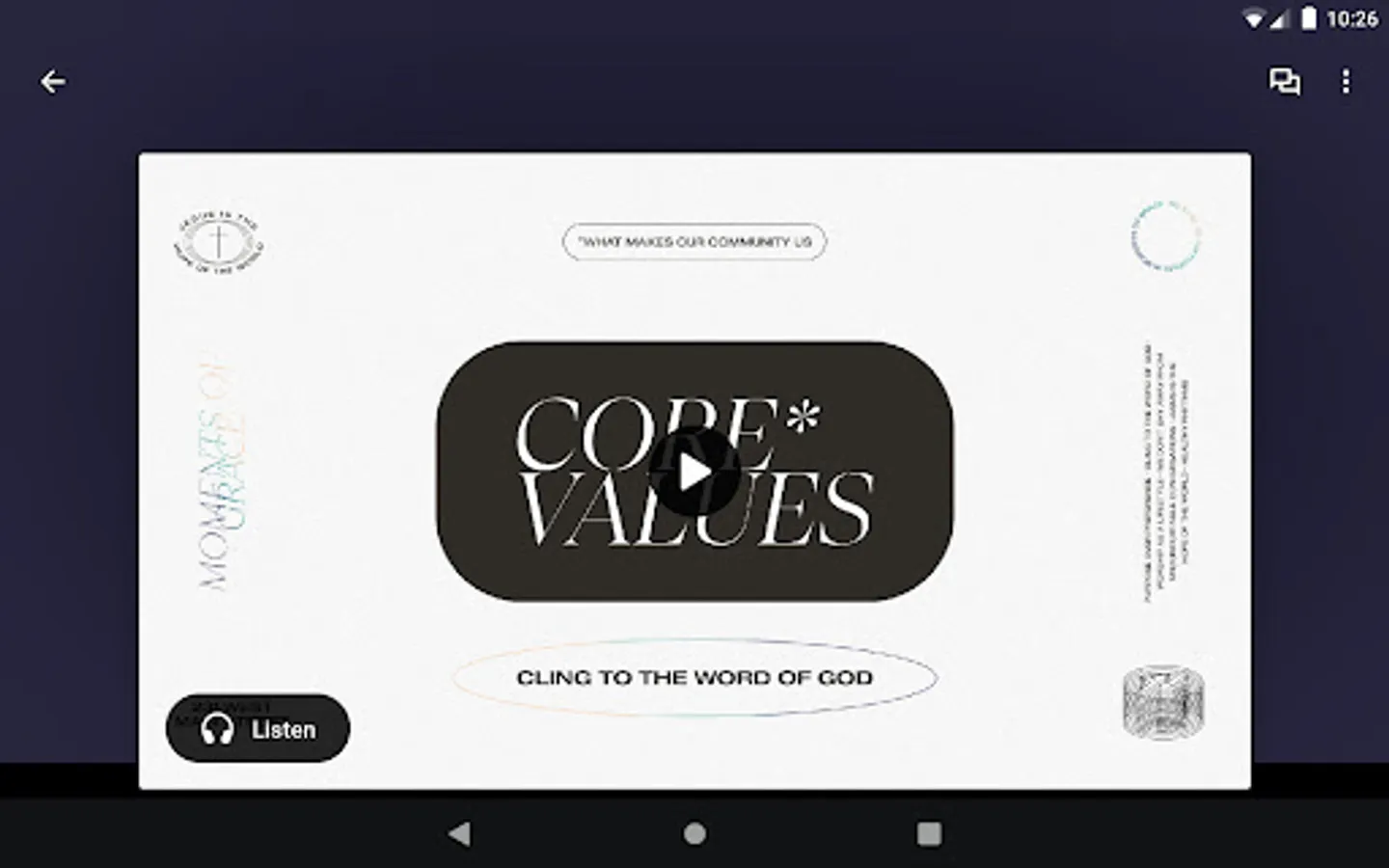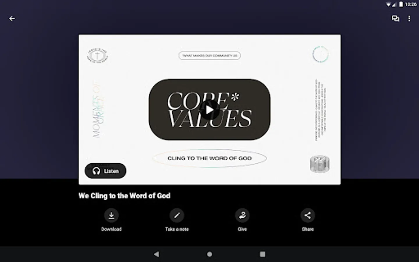 This app will help you stay connected with the day-to-day life of our church. With this app you can: watch or listen to past messages; stay up to date with push notifications; share your favorite messages via Twitter, Facebook, or email; and download messages for offline listening.