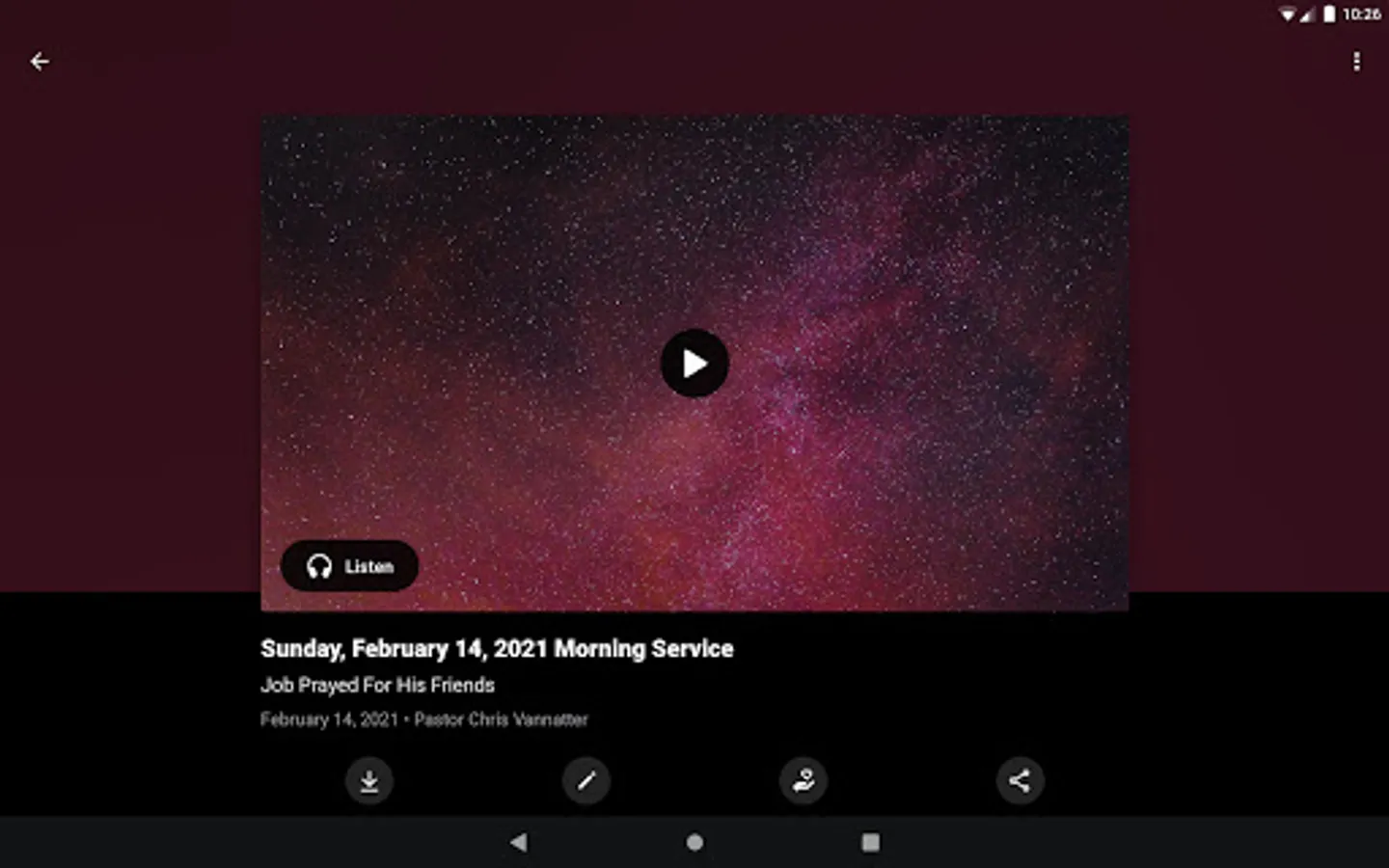 This app will help you stay connected with the day-to-day life of our church. With this app you can: watch or listen to past messages; stay up to date with push notifications; share your favorite messages via Twitter, Facebook, or email; and download messages for offline listening.