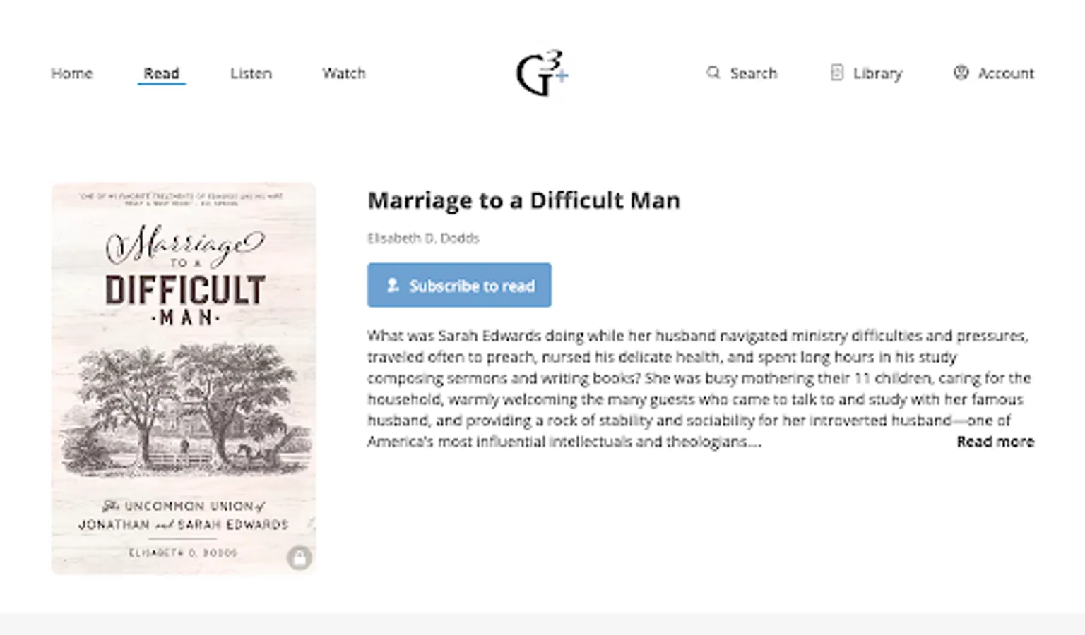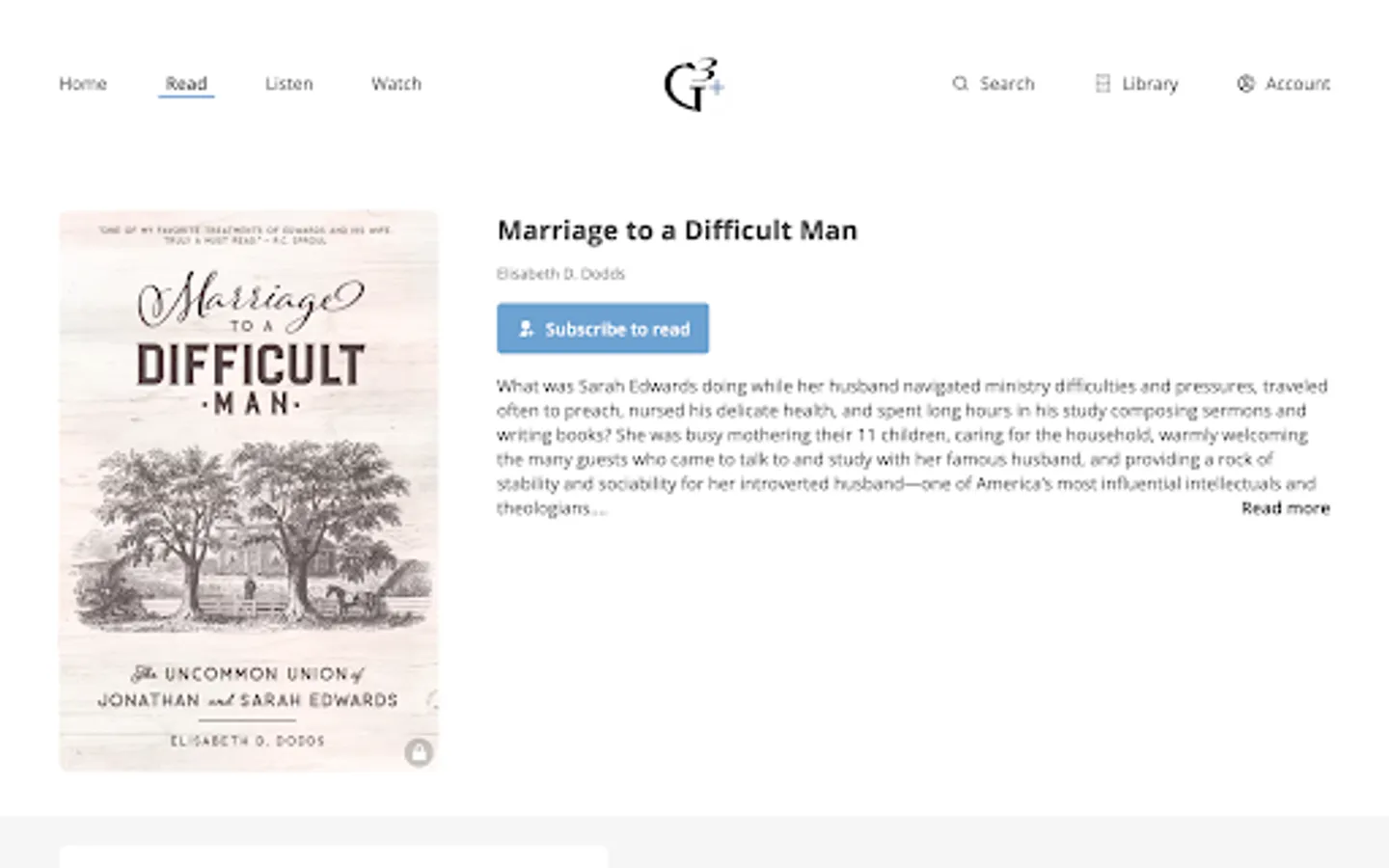 - Stream content from other trusted ministries such as HeartCry, Media Gratiae, Association of Certified Biblical Counselors, the Just Thinking Podcast, Church and Family Life, and more.