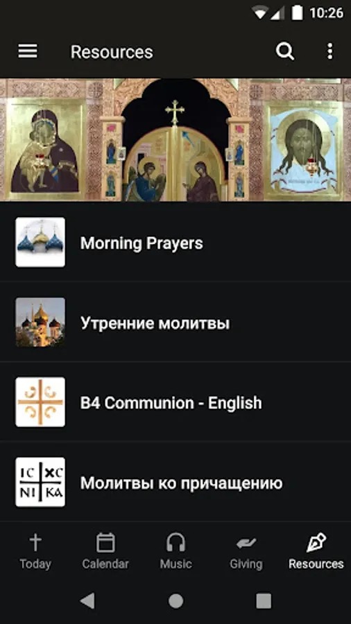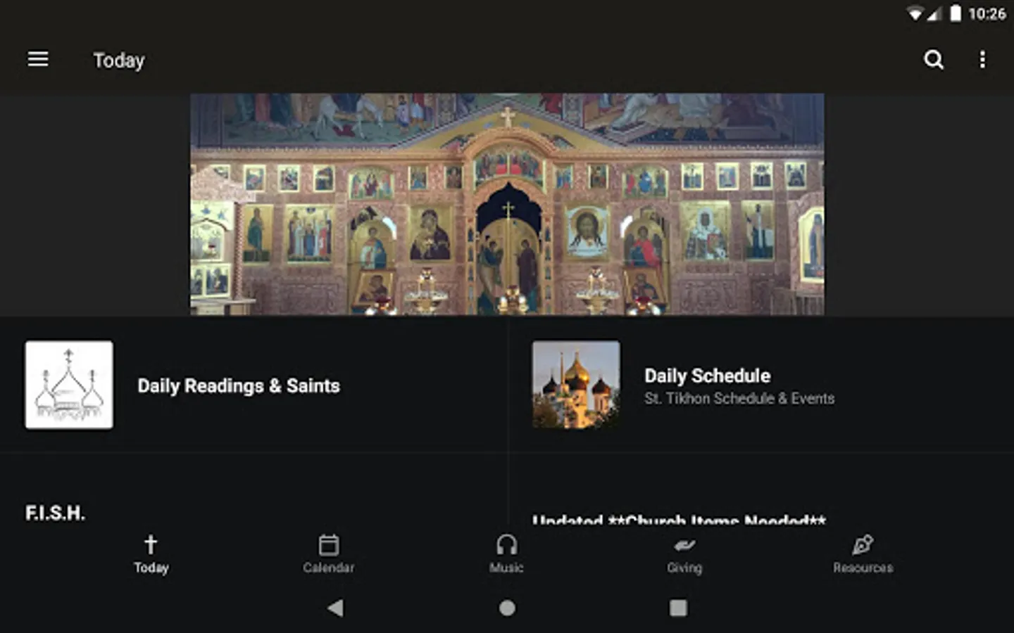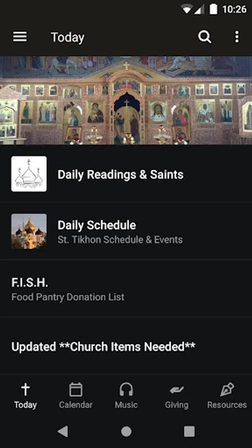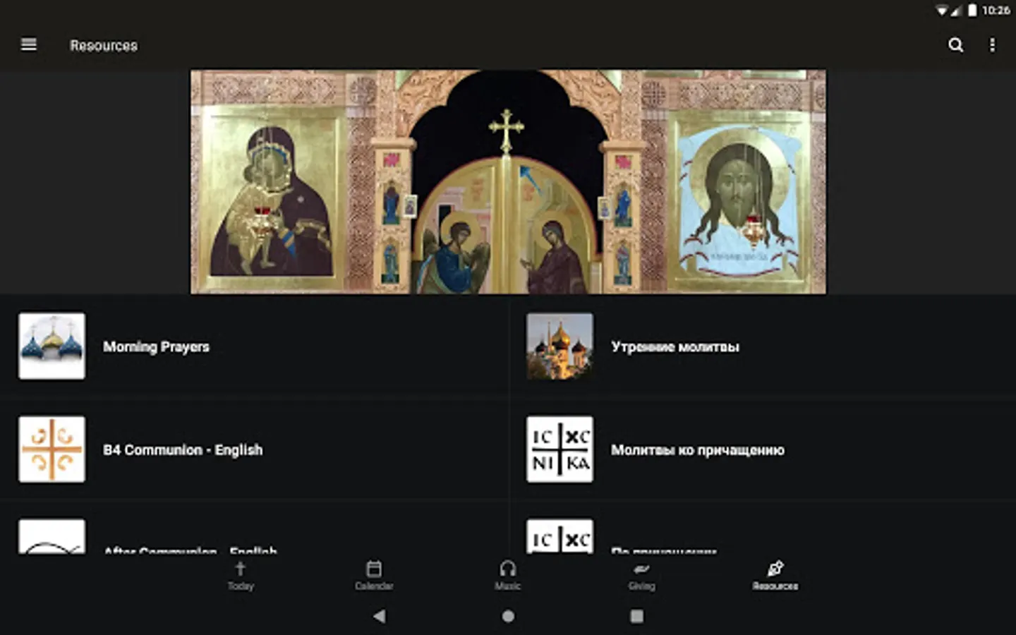 The app includes the Orthodox Calendar with daily scripture reading and saints names. You will also find daily quotes from the Holy Fathers.