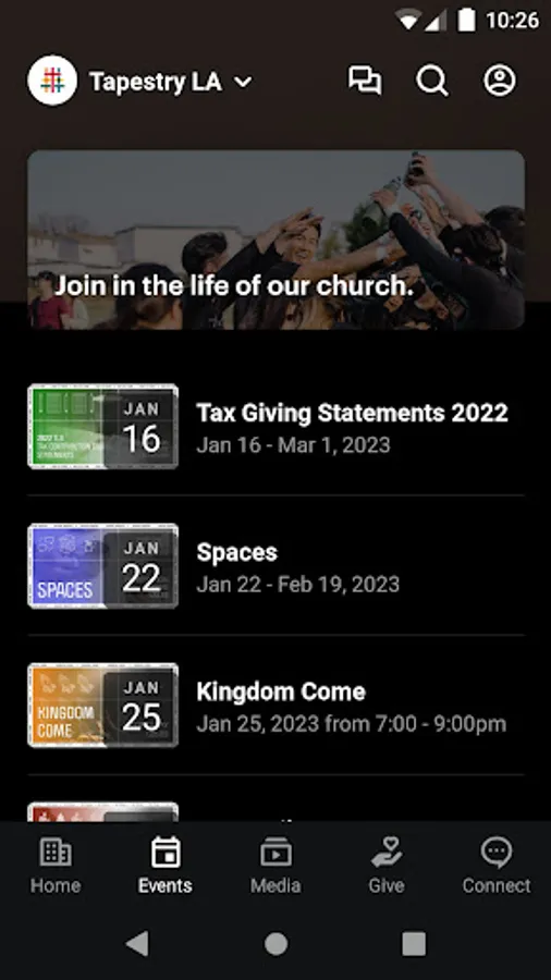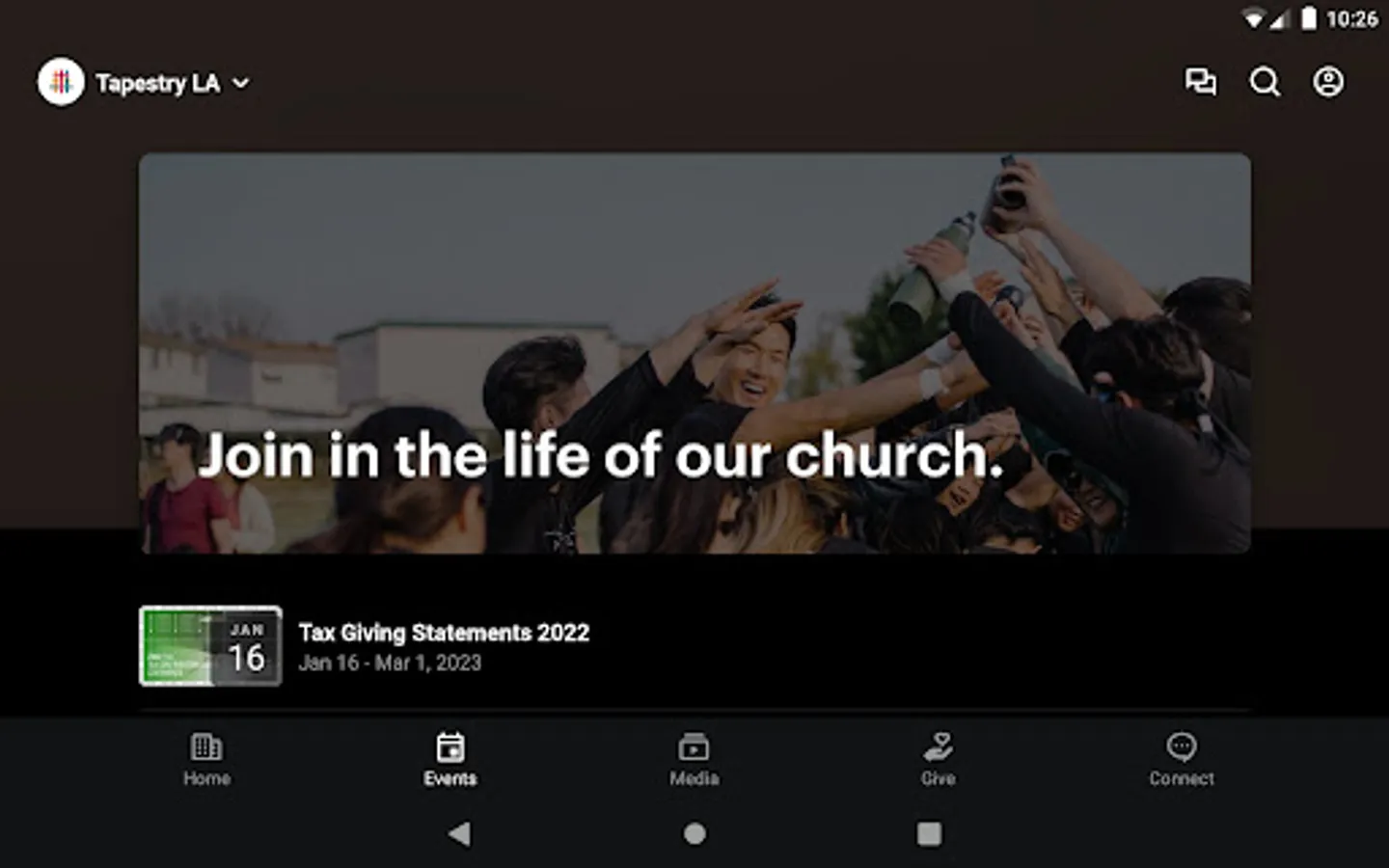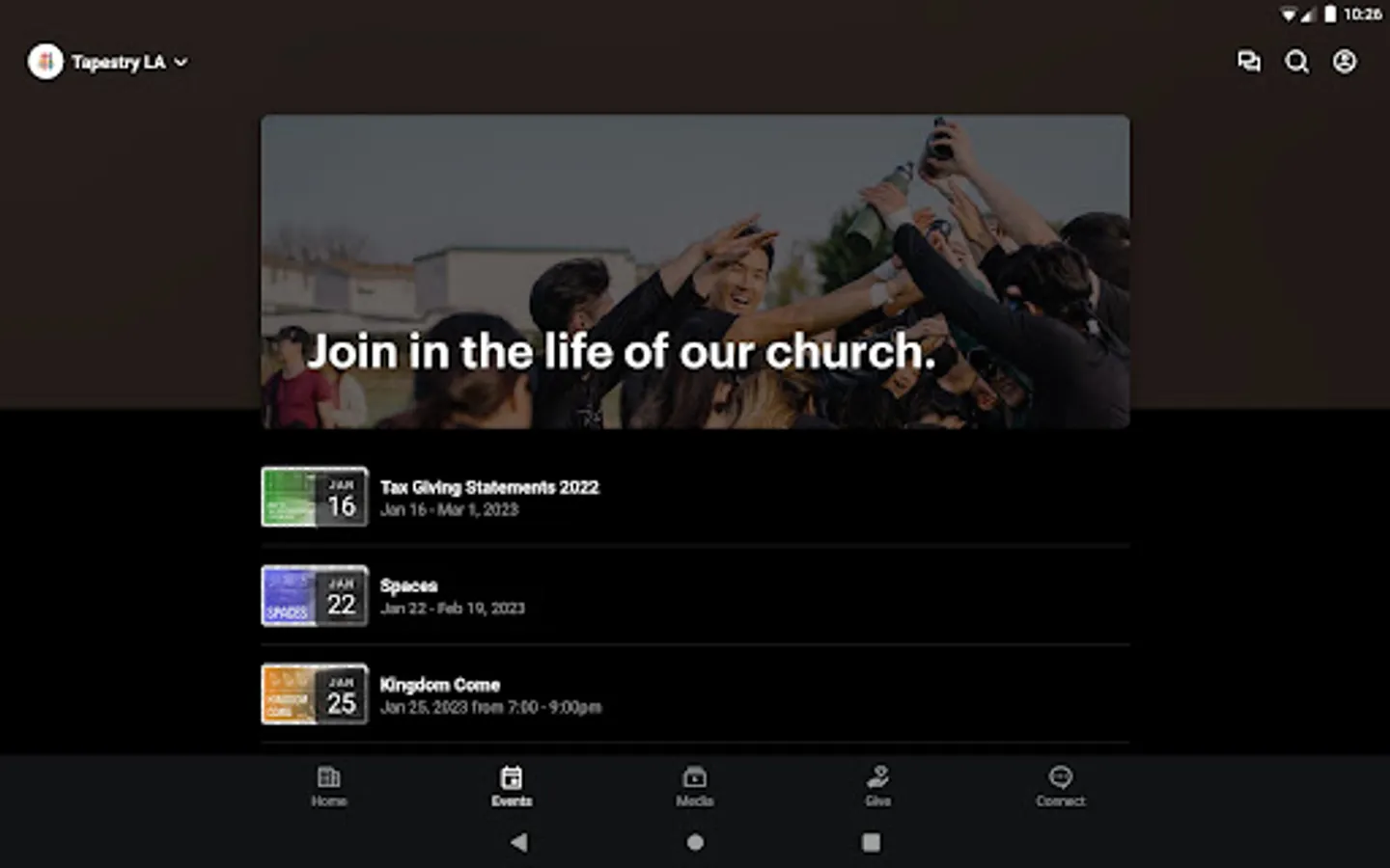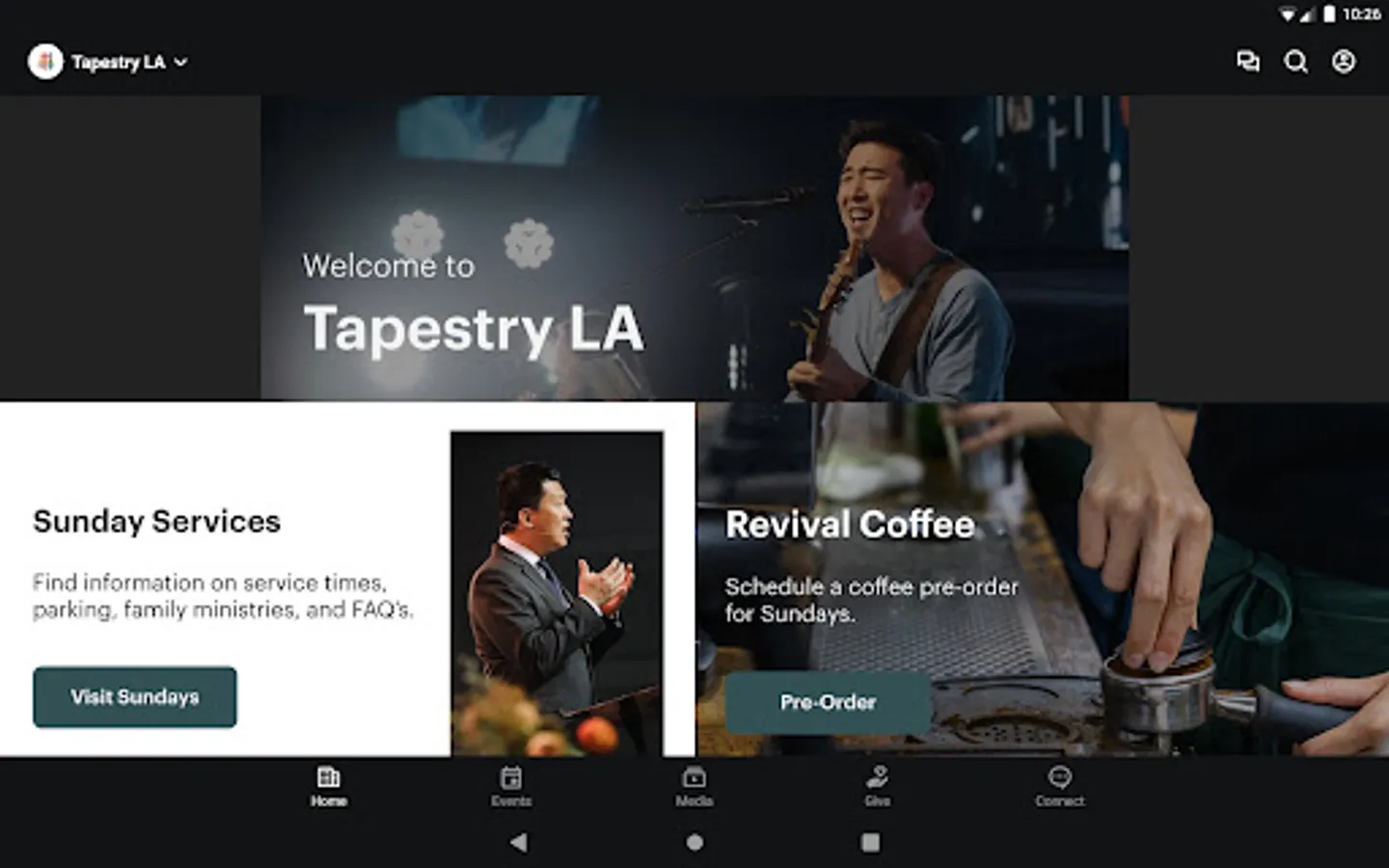 You'll be able to view upcoming events, listen to sermons, connect with cell groups, give and donate, and learn about who we are! Tapestry LA is inviting broken people to be restored by Jesus in the whole of life.