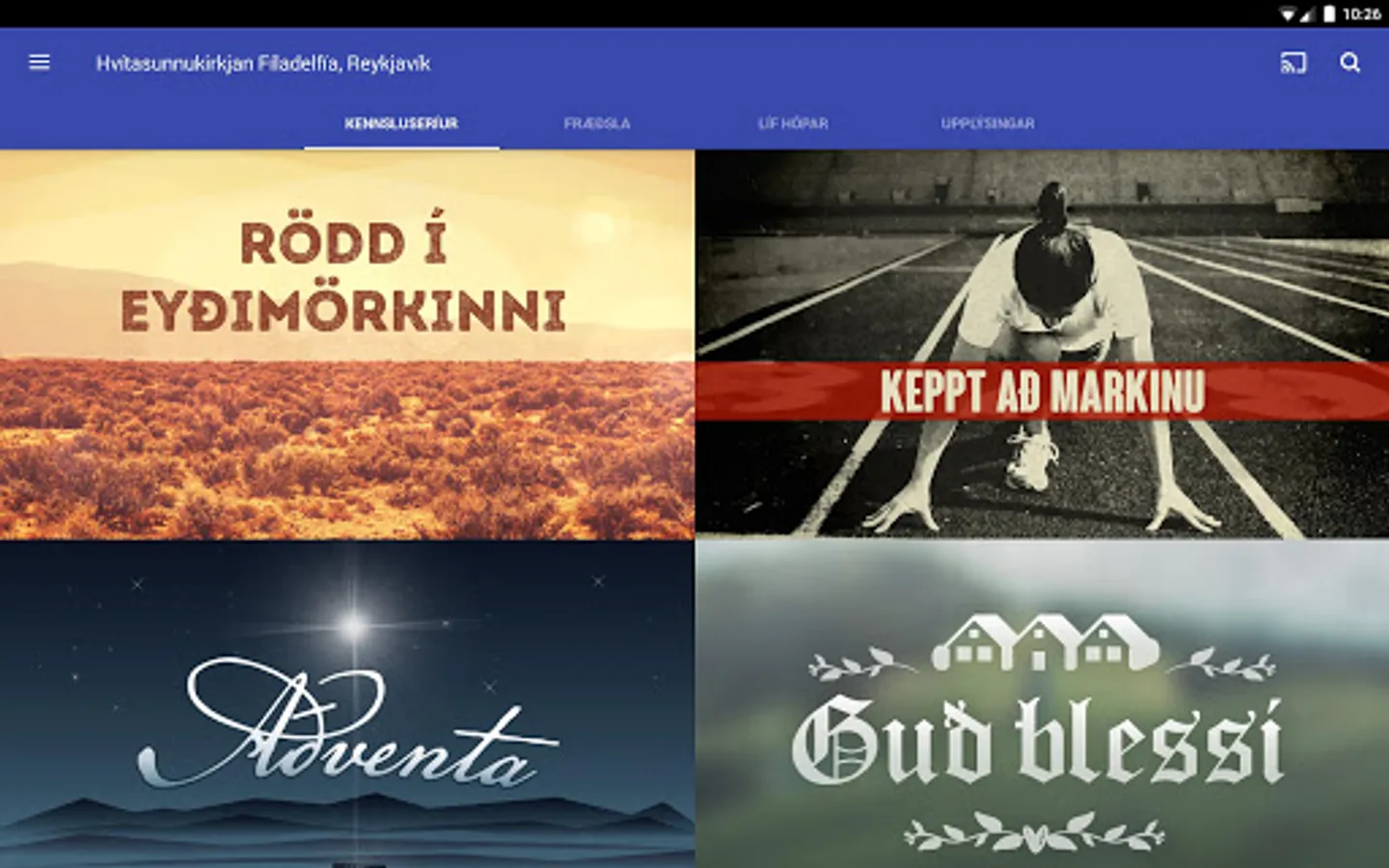 The Hvítasunnukirkjan Fíladelfía App was created with the Subsplash App Platform.