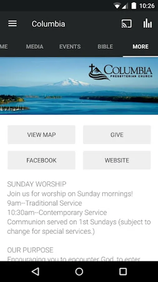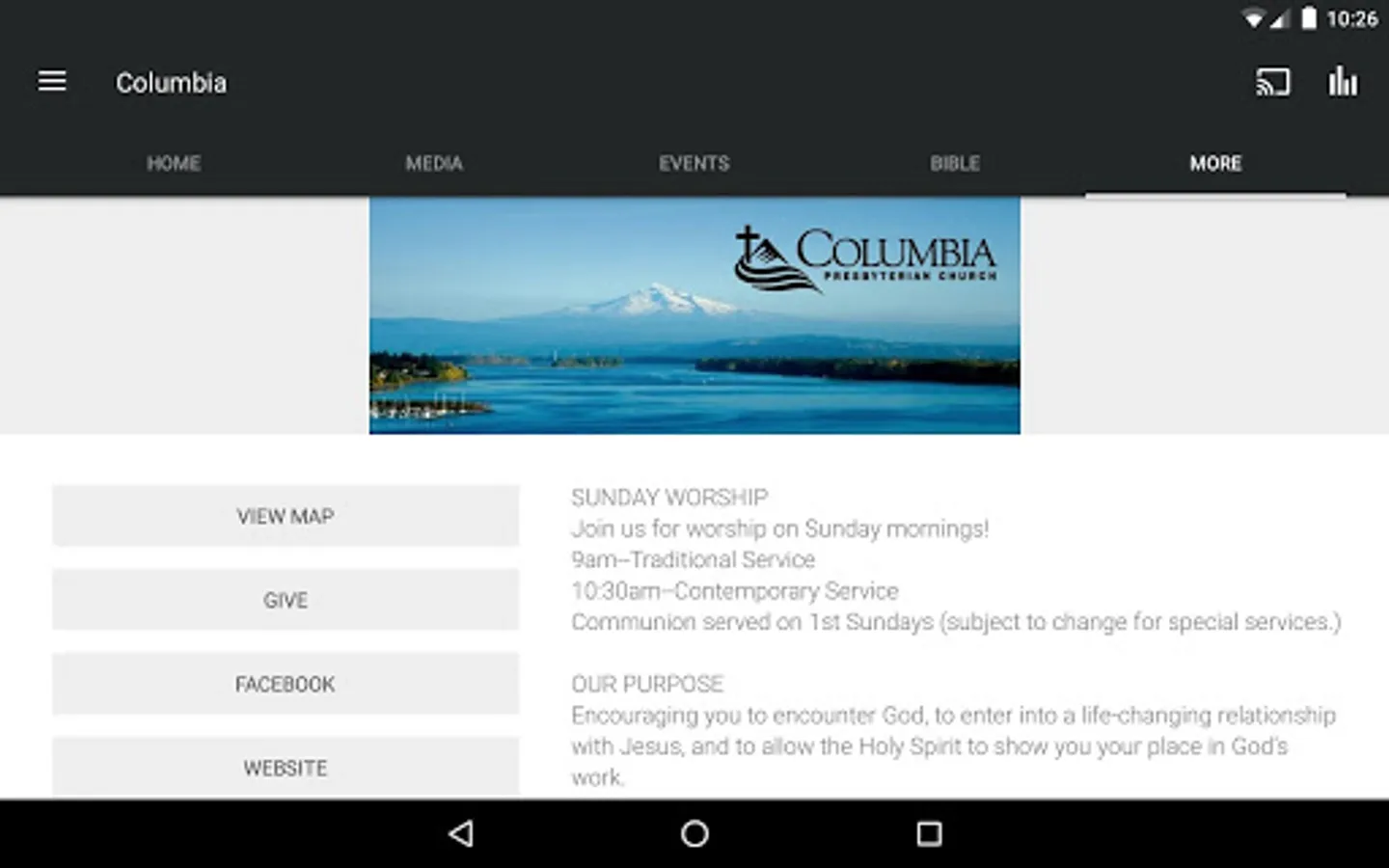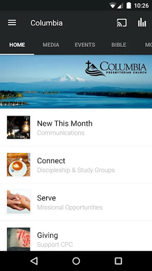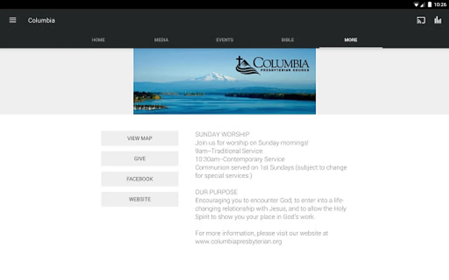 The Columbia Presbyterian Church App was created with the Subsplash App Platform.