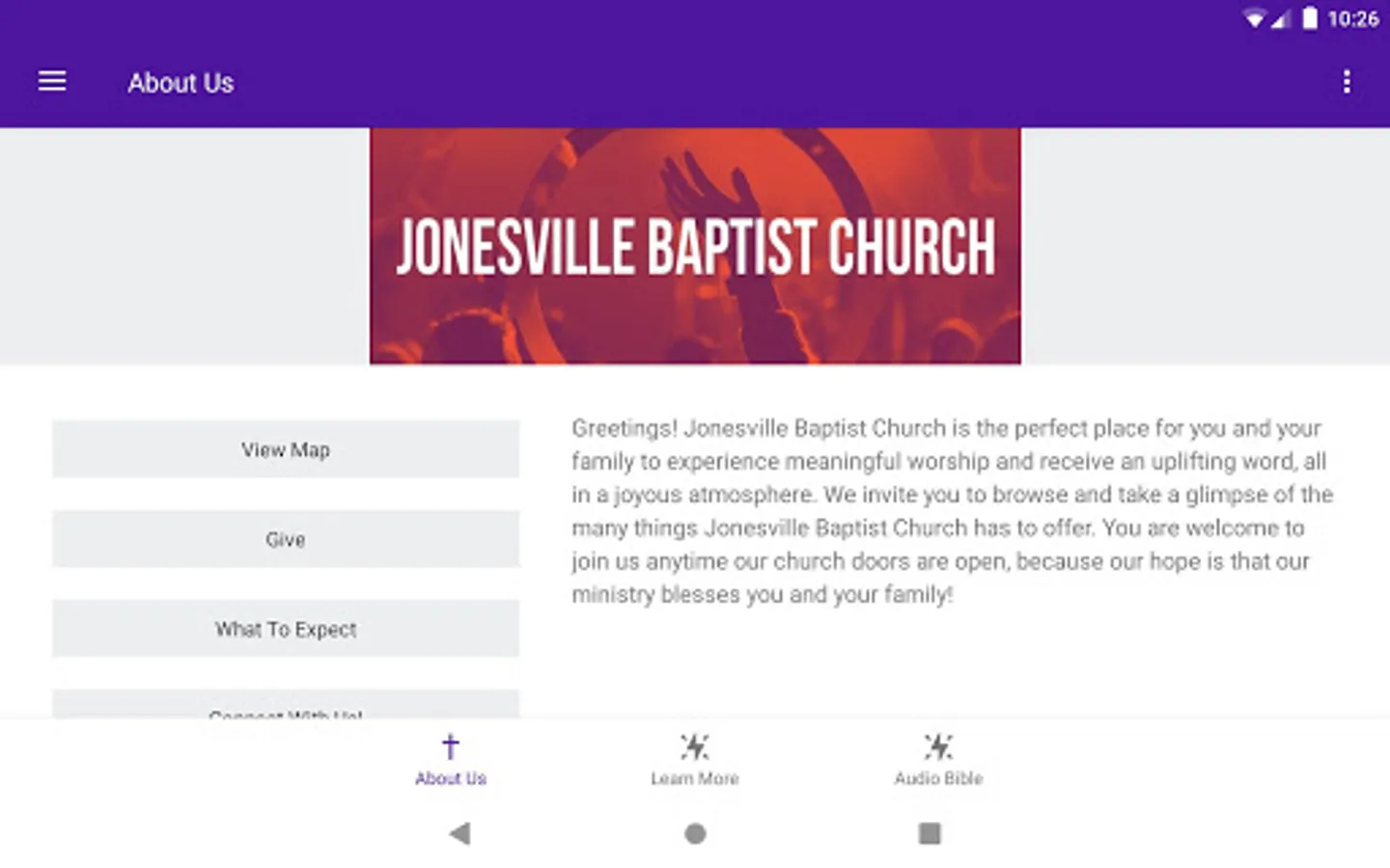 Welcome to the Official Jonesville Baptist Church mobile app. This FREE app allows you exclusive access to everything concerning Jonesville news, events, updates and sermons from Pastor James G. Rodges. You will also have access to our live video stream so you can experience the joyful atmosphere of Jonesville live every week.