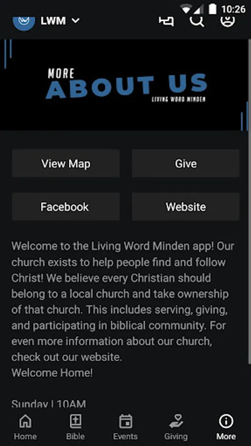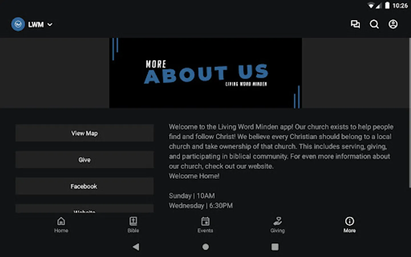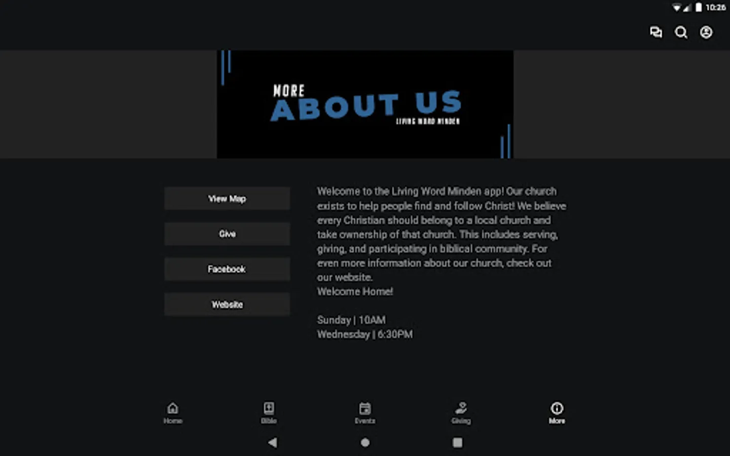 Welcome to the official Living Word Minden App! Designed to bring LWM right into the hands of the church members. Get connected to our online community, and receive inspiration and encouragement, anytime & anywhere!