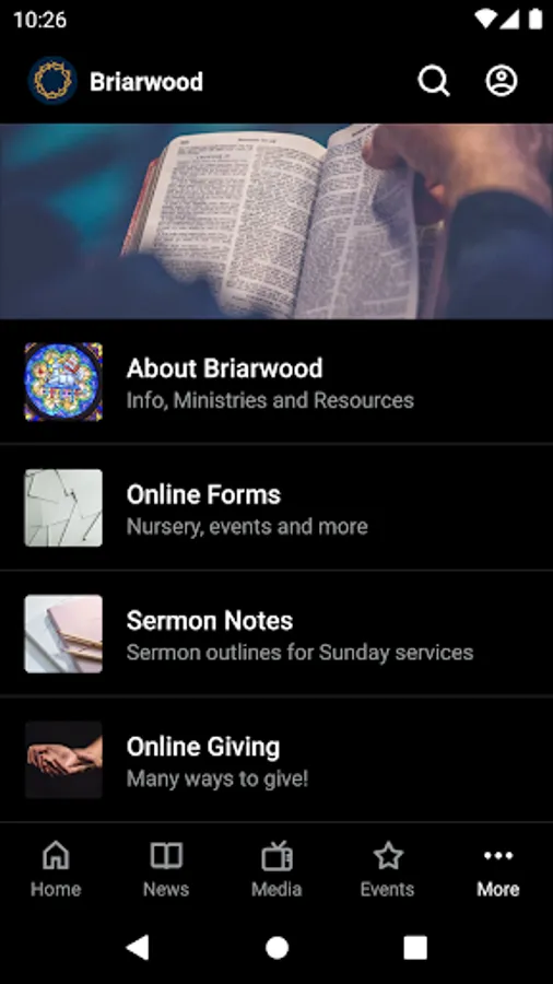 The Briarwood PCA App was created with the Subsplash App Platform.