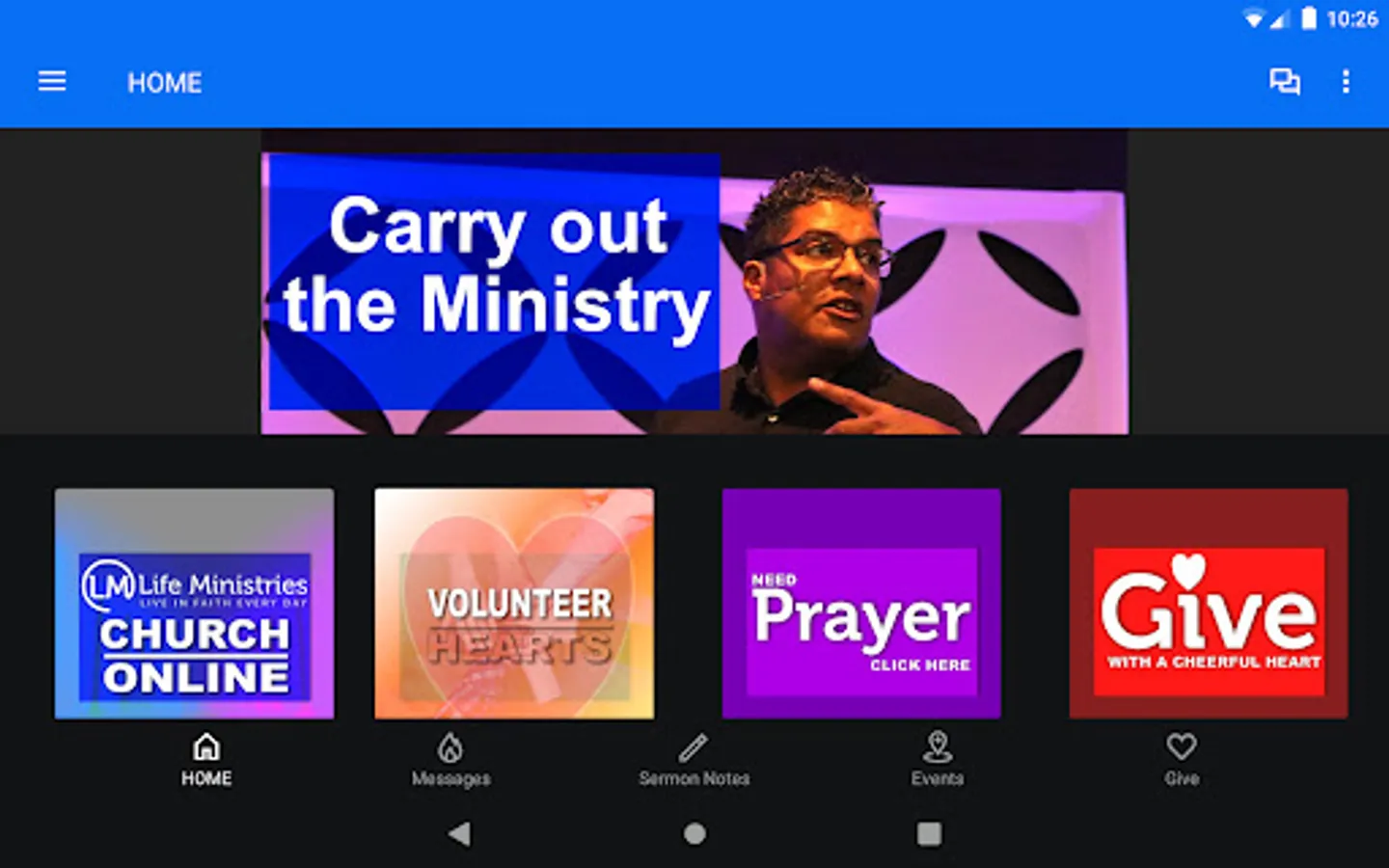 find out what's new and upcoming with our events section, get connected to Life Ministries Church and conveniently give online all from your mobile phone or tablet.