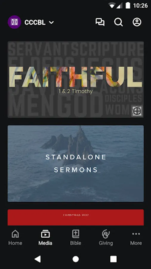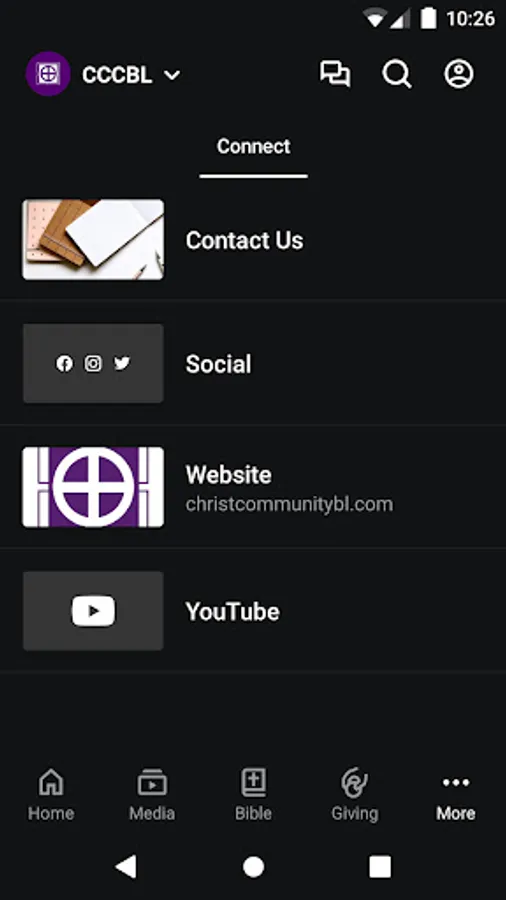 This app will help you stay connected to Christ Community Church. You can watch or listen to past messages, tune into a live stream when available, connect to other members and attenders and give to support our ministry. Stay connected with the day-to-day life of our church. With this app you can also: stay up to date with push notifications; share your favorite messages via Twitter, Facebook, or email; and download messages for offline listening.