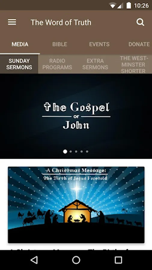 Our app allows you to watch, listen, or read our sermons, listen to our radio programs, read or listen to the Bible, listen to The Westminster Shorter Catechism, see when our latest church events will be, generously donate to us, and much more!