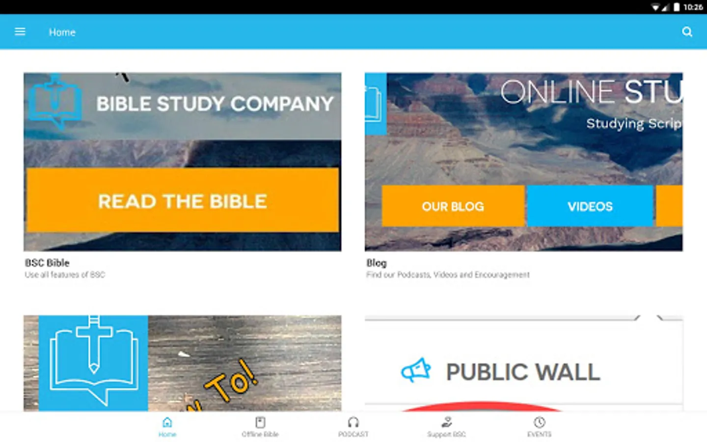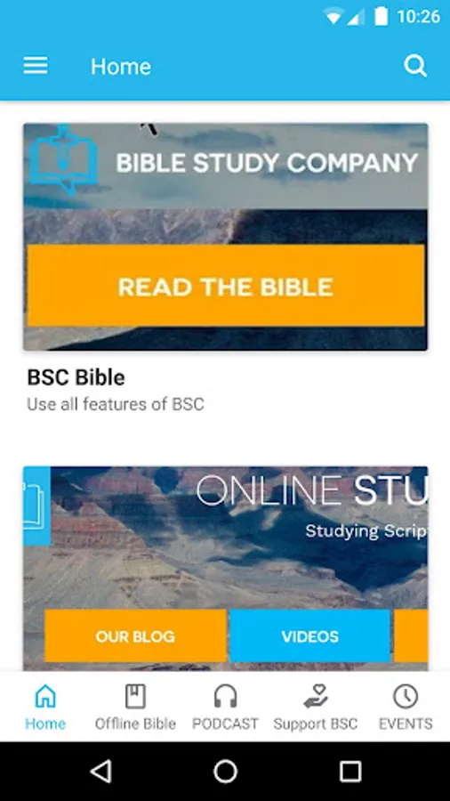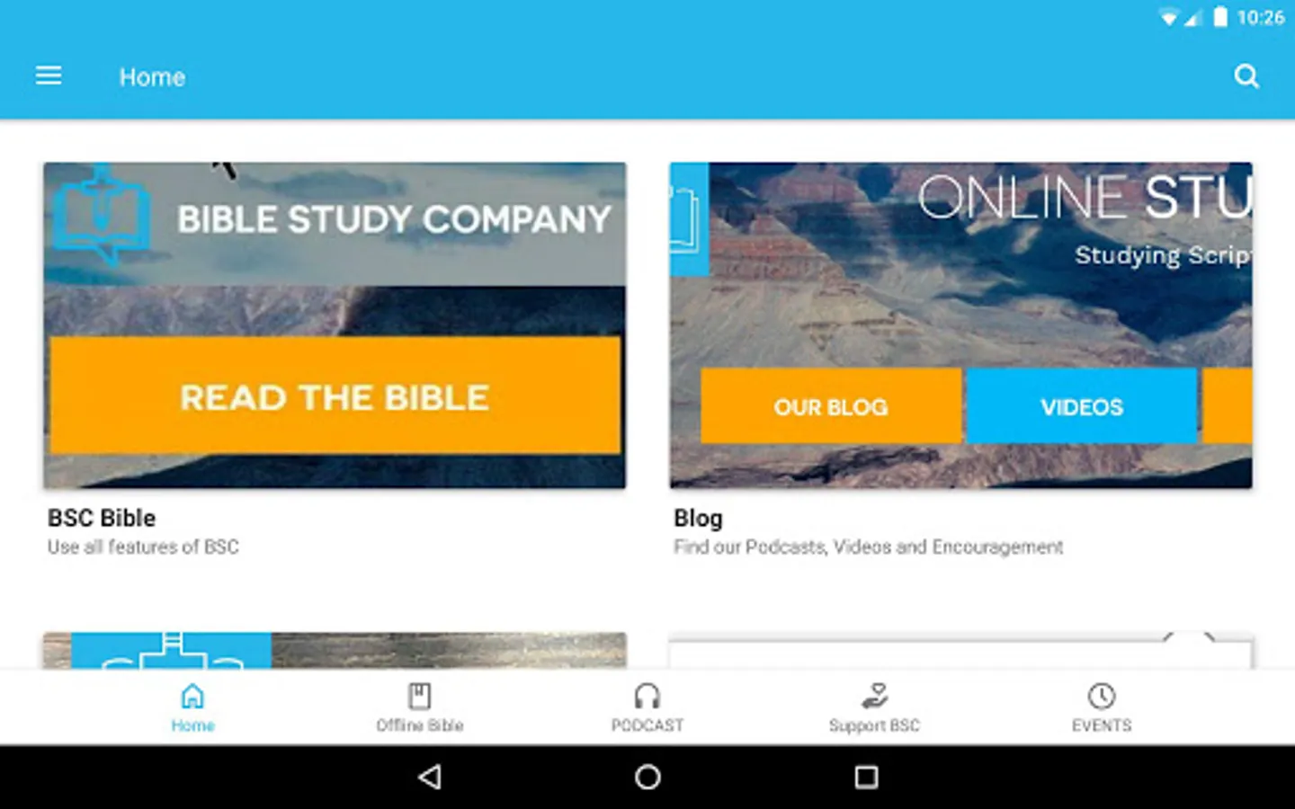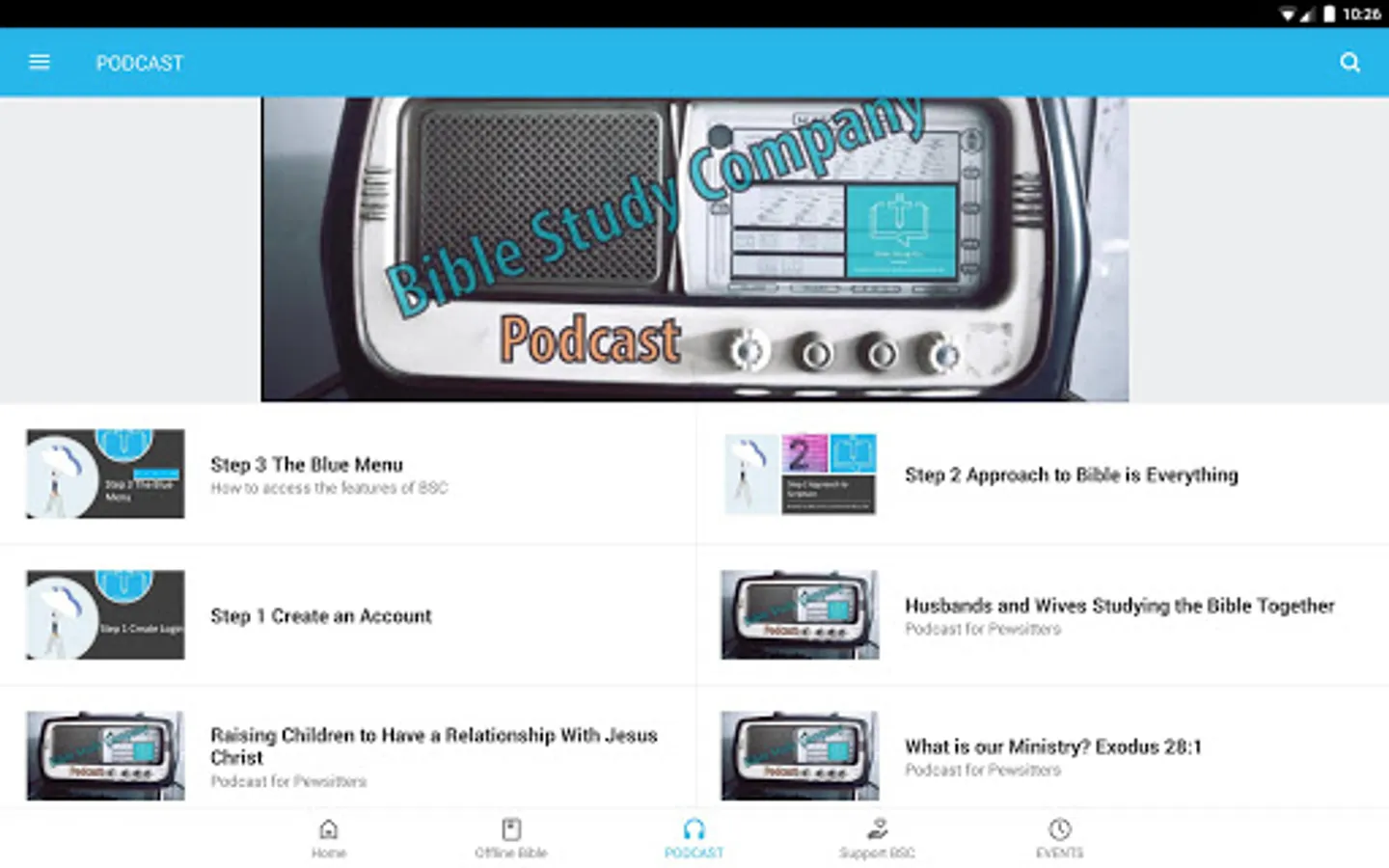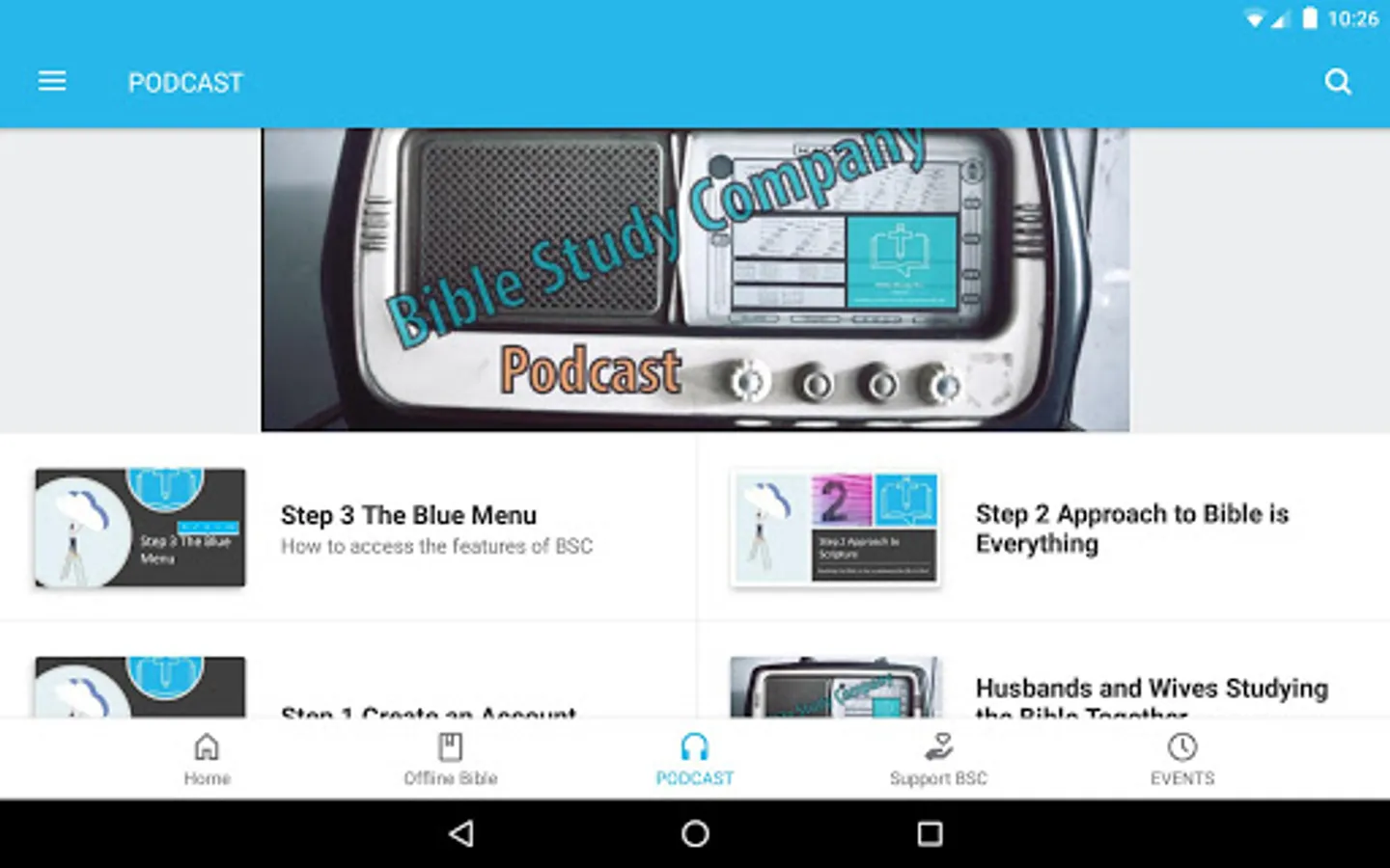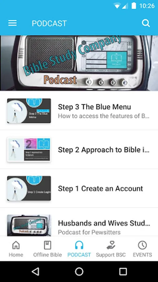 Important: Do not log in or create an account using the top menu in the mobile app — use our website at biblestudycompany.com to create an account.