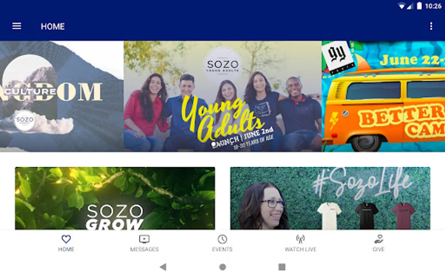 Never miss a connection with the Sozo Church app. This features events (with registration available if needed), link to our Livestream, information of each ministry, how to get involved, and online giving.