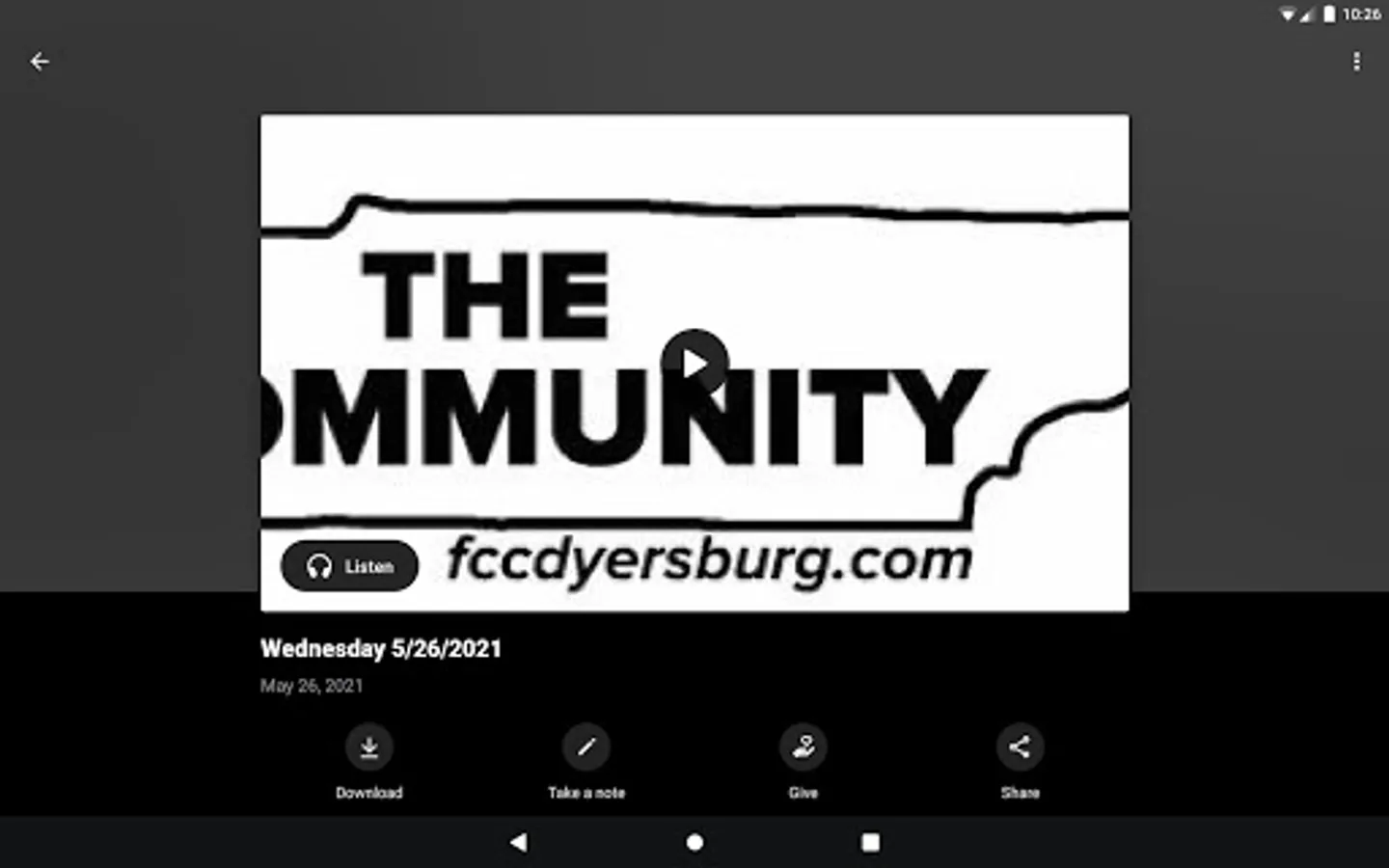 This app will help you stay connected with the day-to-day life of The Community @ Dyersburg. With this app you can: watch or listen to past messages; stay up to date with push notifications; share your favorite messages via Twitter, Facebook, or email; and download messages for offline listening.