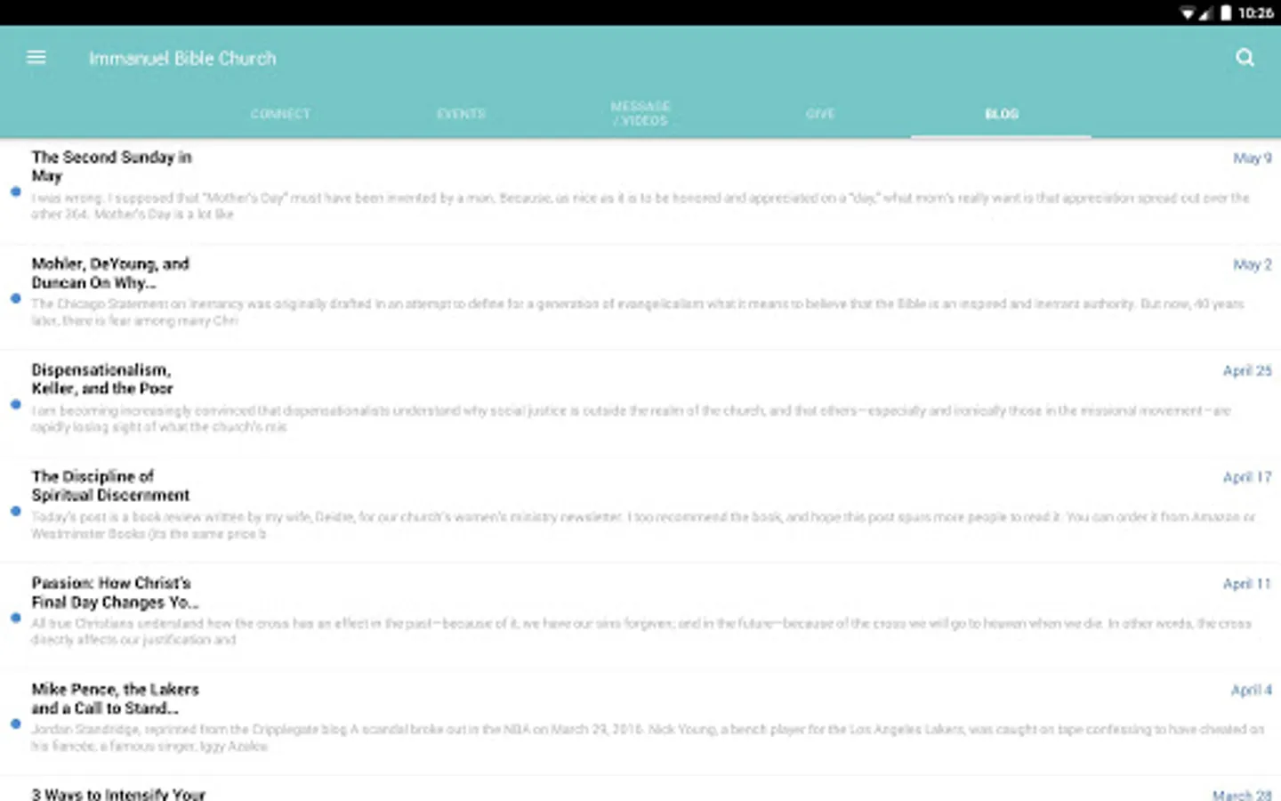 - Blog posts from some of our pastors