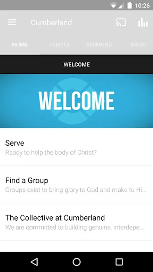 The Cumberland Church app features sermons, events, a weekly Bible reading plan, serving opportunities, and other ways to stay connected with Cumberland Community Church.