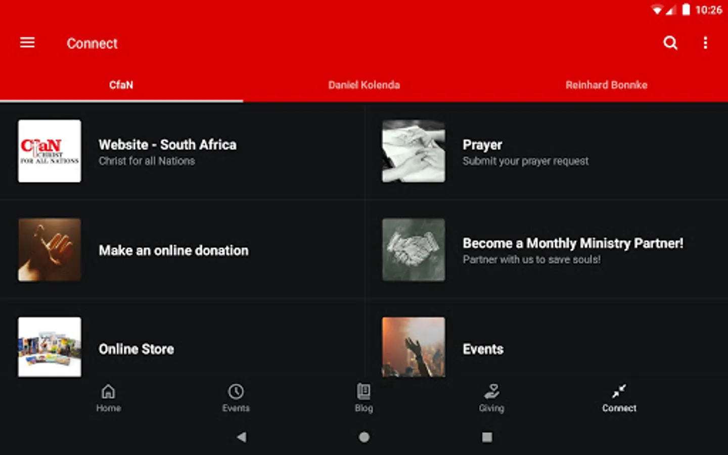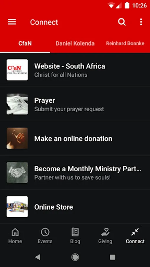 You can now enjoy and have access on your device to all of CfaN's global outreach efforts. It is also a way for us to stay in touch, provide sign up opportunities and current event updates to our international ministry.