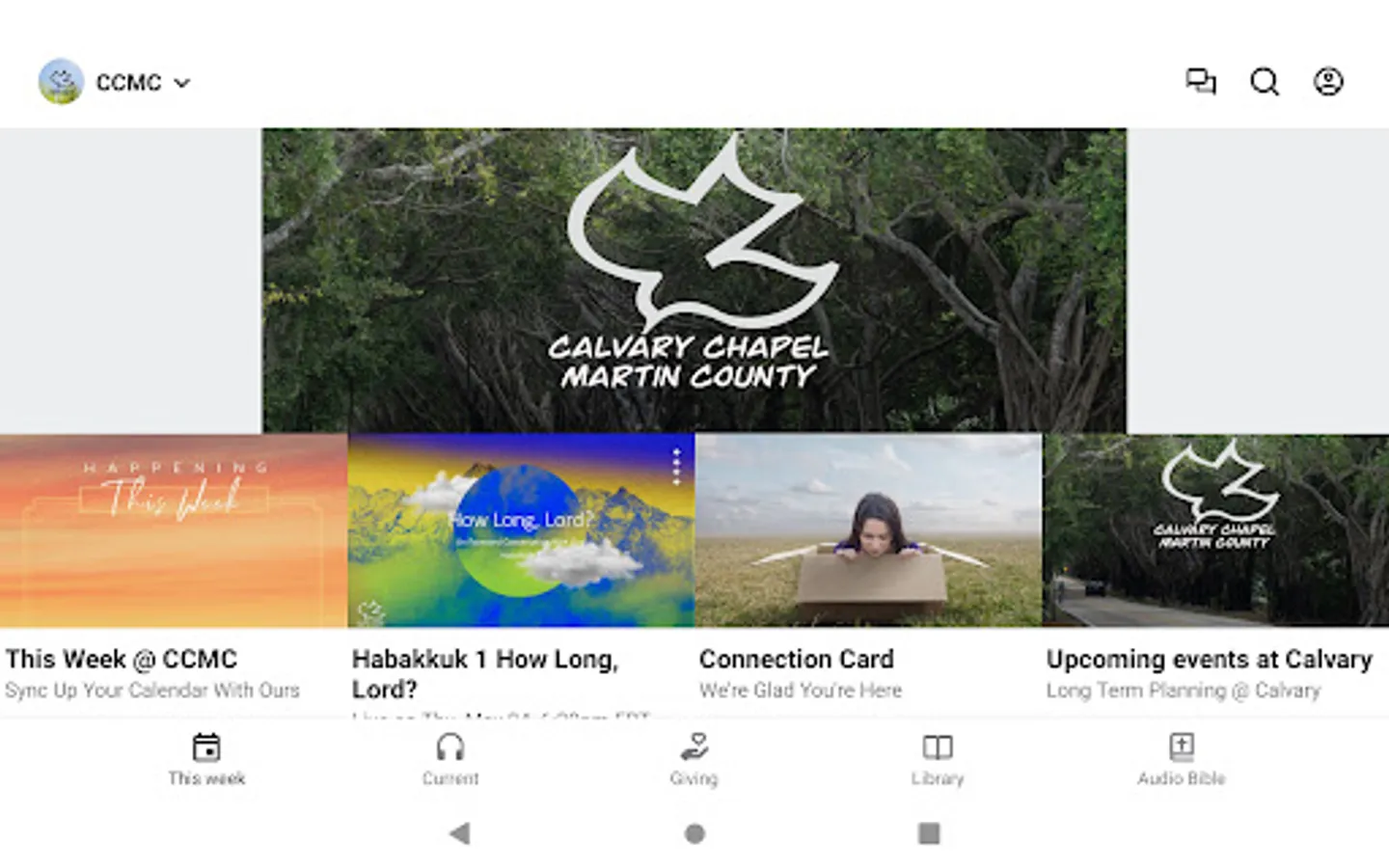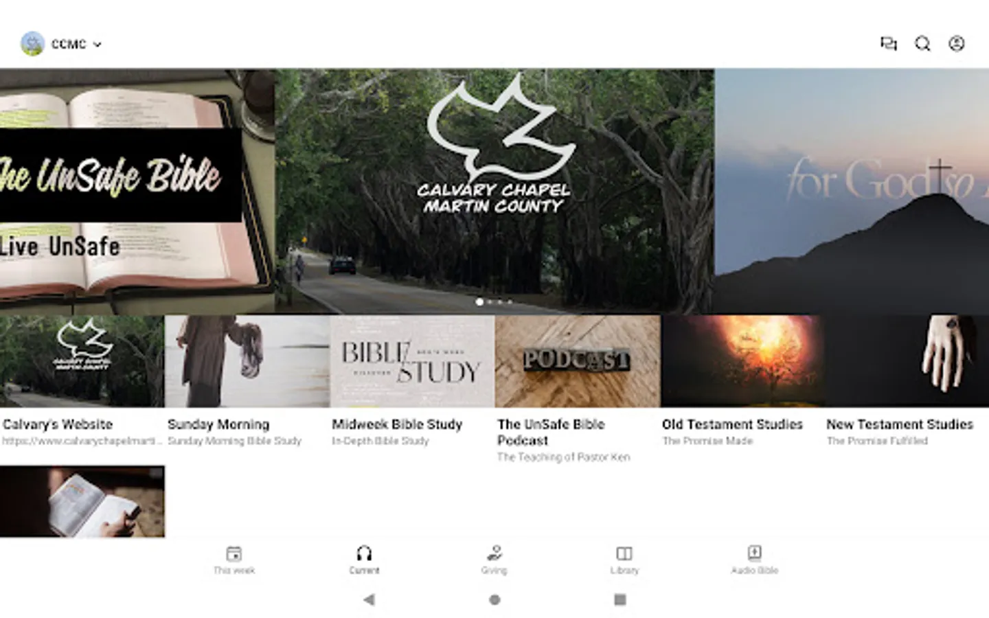 Welcome to the official Calvary Chapel Martin County church app. Download this free app to stay connected and up to date with what is going on at Calvary Chapel Martin County..This app will provide you with Pastor Ken's recent teachings, weekly bulletins, church calendar, a built-in Bible, and a whole lot more. Stay plugged in with the ministry of CCMC by downloading our app today.