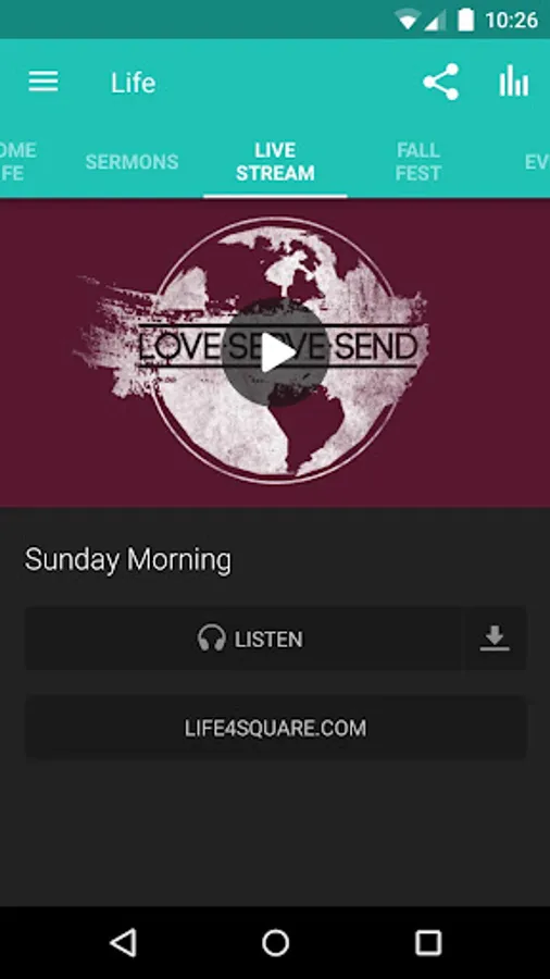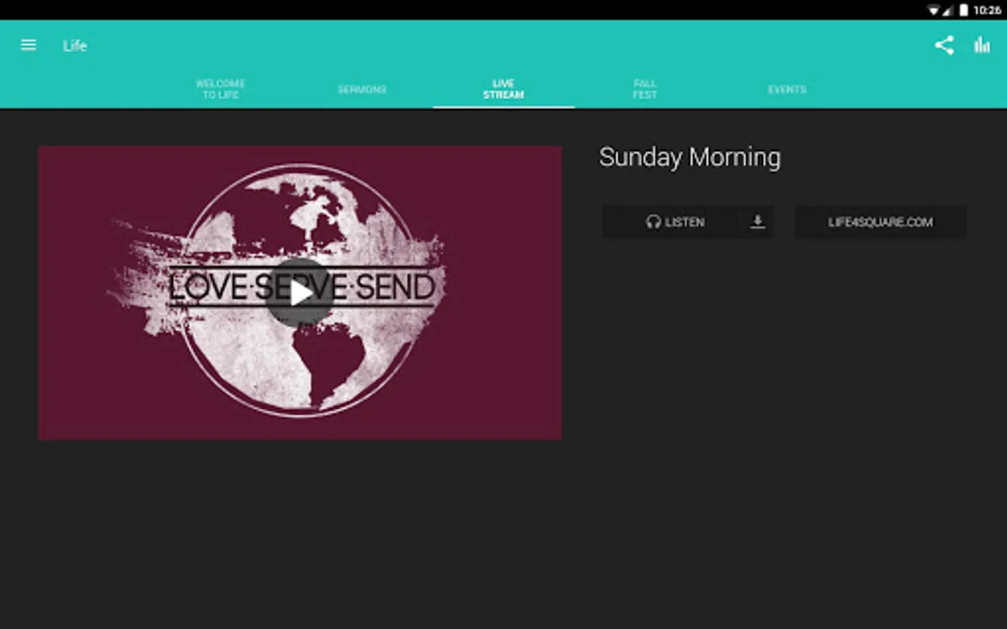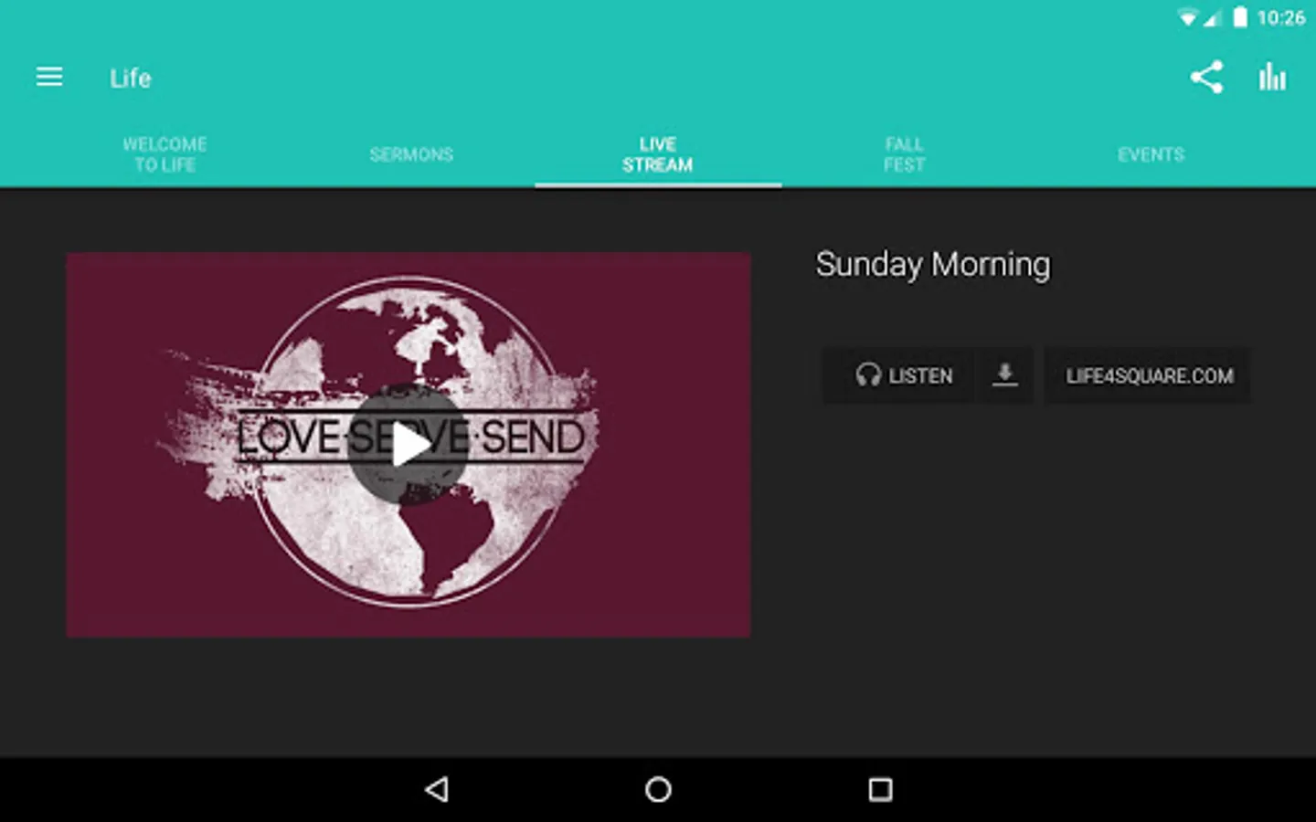 The Life Foursquare Church App was created with the Subsplash App Platform.