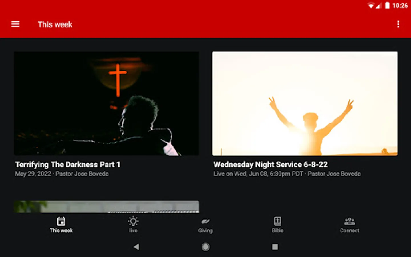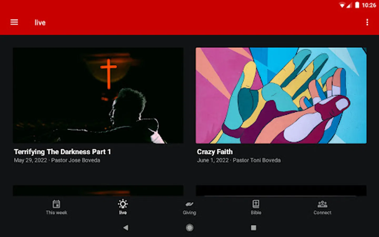 This app provides access to all our content ranging from Sunday Services, Wednesday Night Services, Friday Nights (Youth Ministry), Media Specials, Fine Arts Drama ministry, Dances and so much more!