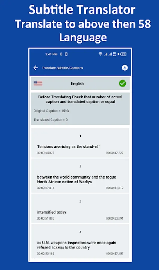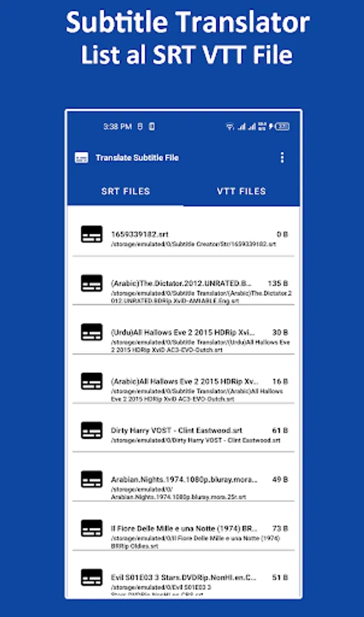 Subtitle srt translator translates all captions of srt file within a second to a different language. The app also supports vtt file translation. The subtitle caption translation app detects the language of the subtitle and then translates it to the desired language you want. The tools also work as subtitle viewers, you can easily view srt subtitle file and vtt subtitle file. Easily view all srt files and vtt files.