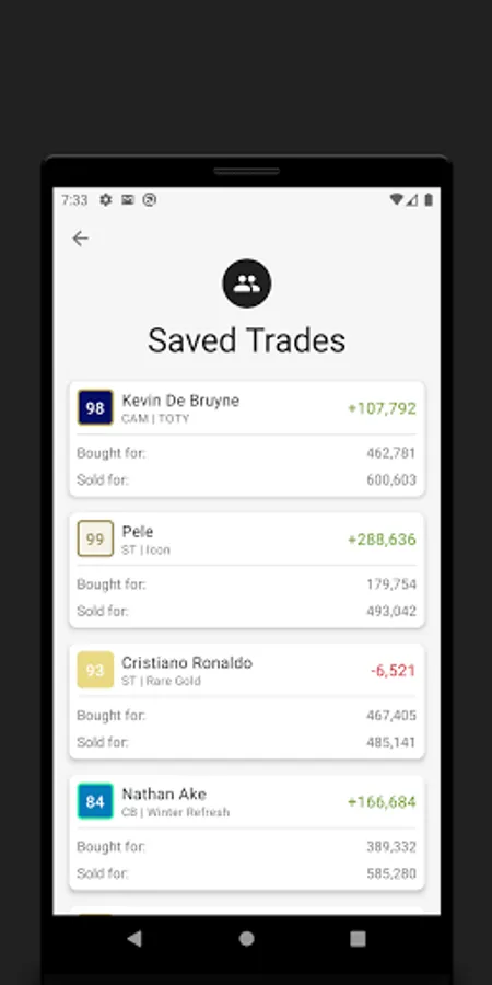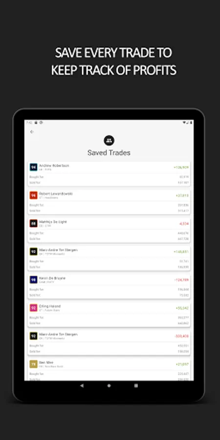 See a comprehensive history of all FUT trades with the built-in the trading database. Now you can save all your FUT Ultimate Team trades in one easy to access location so you can see exactly how much profit you have made on every single transfer.