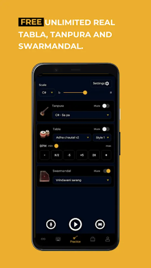 Singtico provides an online platform and studio that lets you practice and learn along with high quality virtual music instruments including an high quality tanpura droid. It is targeted for beginners and advanced level music practitioners. It can be used by anyone learning Indian classical vocals, practicing or learning any Indian classical instruments like tabla, flute, harmonium and classical dancers.