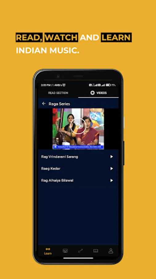 60+ Swarmandal ragas including bhimpalasi, vrindavani Sarang, Bhopali and many more.