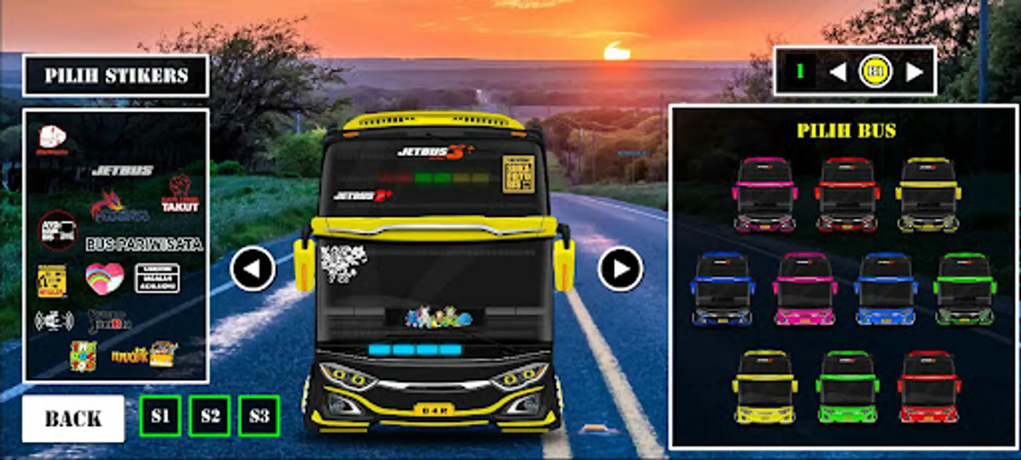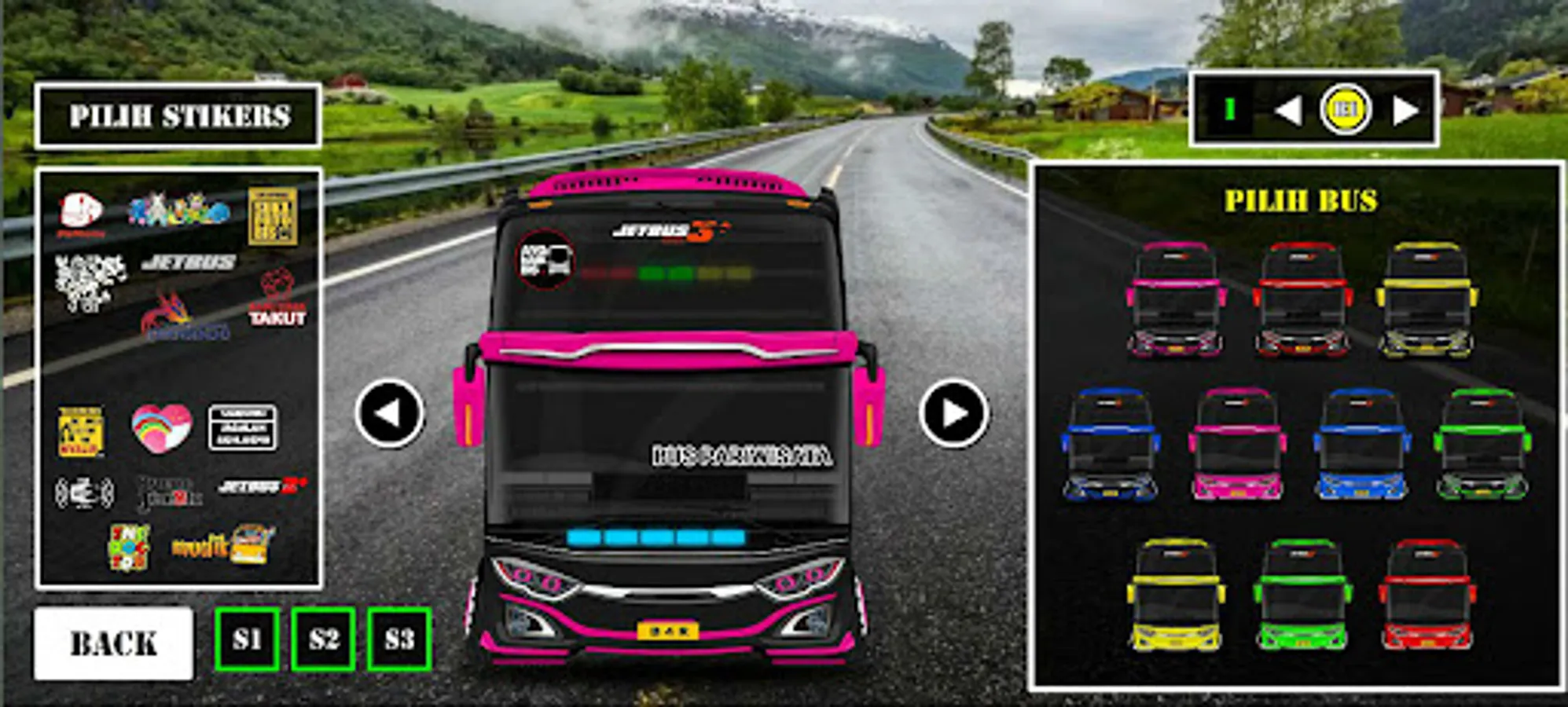 choosing a bus, bus road background, activating bus telolet basuri, choosing a sticker for the bus glass, and