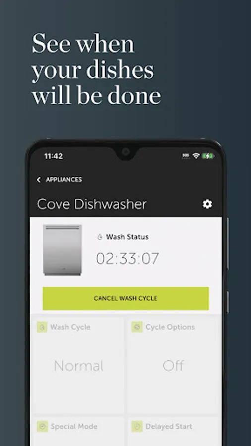• Receive push notifications that a cycle is complete or the dishwasher door is open