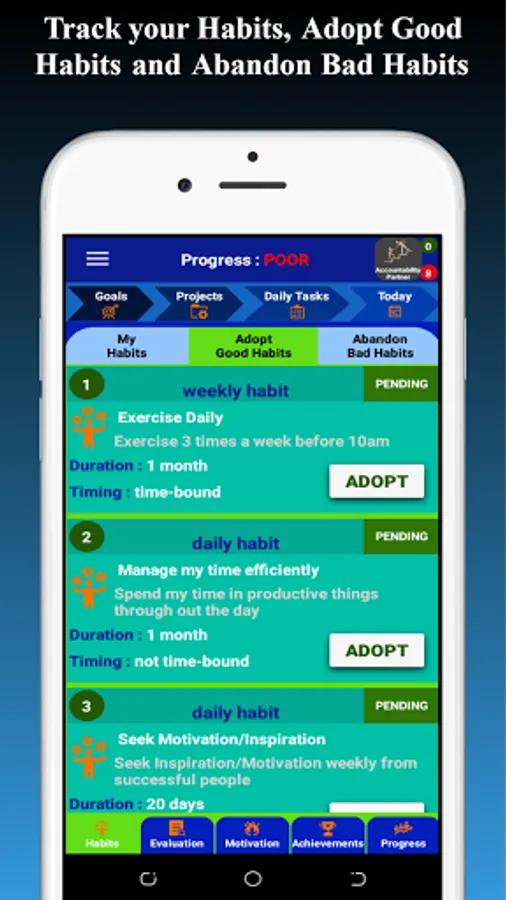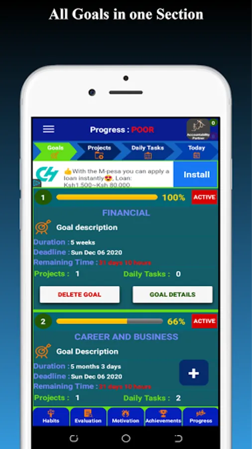 Achievements :Save your daily achievements to track your progress.