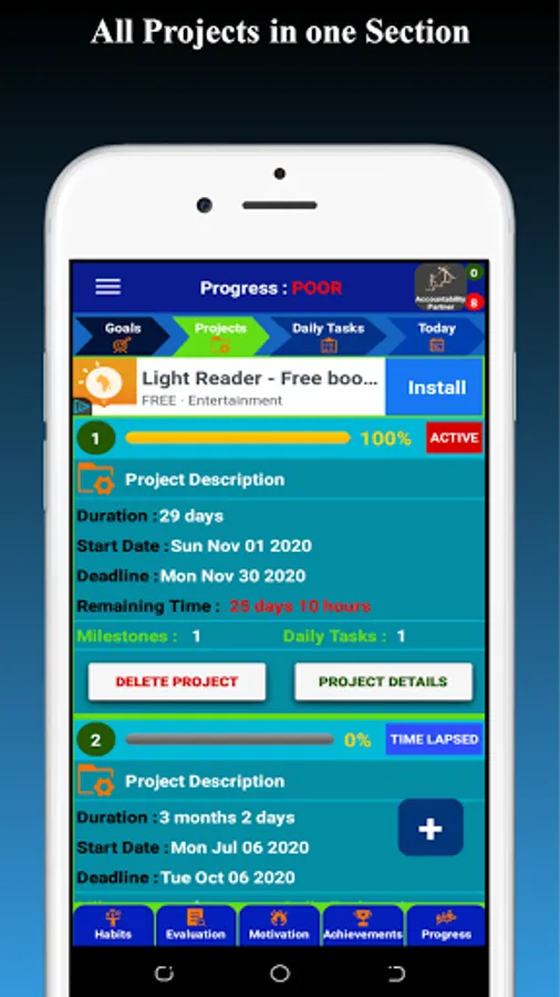Set Goals, Projects, Milestones and Tasks Timelines to ensure you finish them in time.