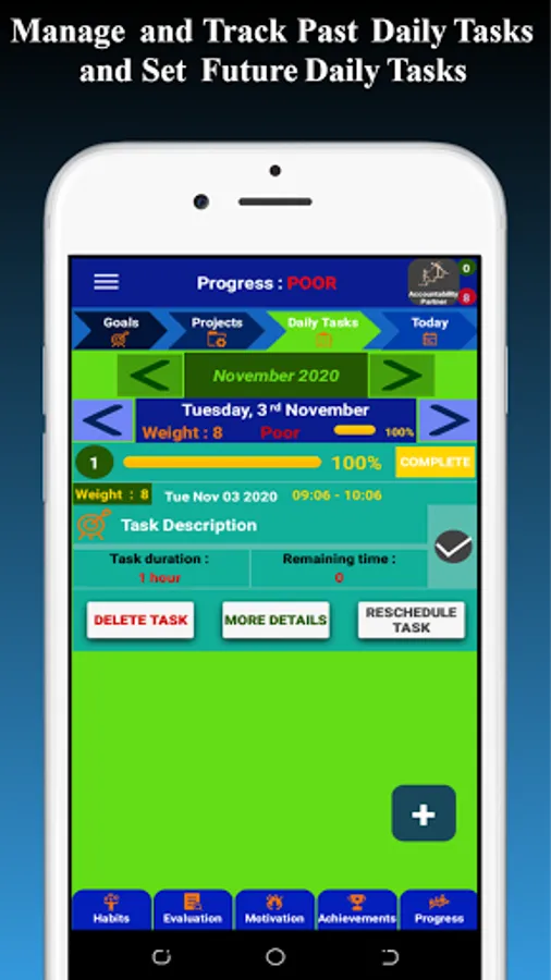 DAILY TASKS : Set daily clear next action steps (tasks) under Goals, Habits, Projects and/or Milestones to track your Progress and make each day count in the Journey Towards Success.