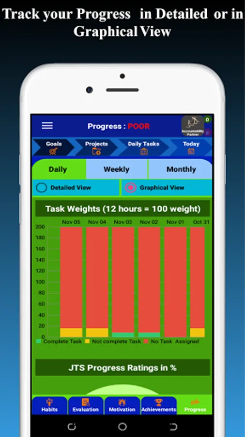 Progress :Track your daily, weekly and monthly progress in both detailed and graphical views.
